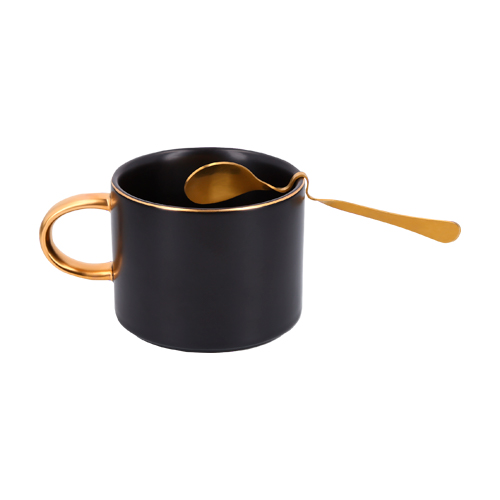 CAPUCCINO Taza de cerámica con cuchara de acero inoxidable para sujeción en el borde.