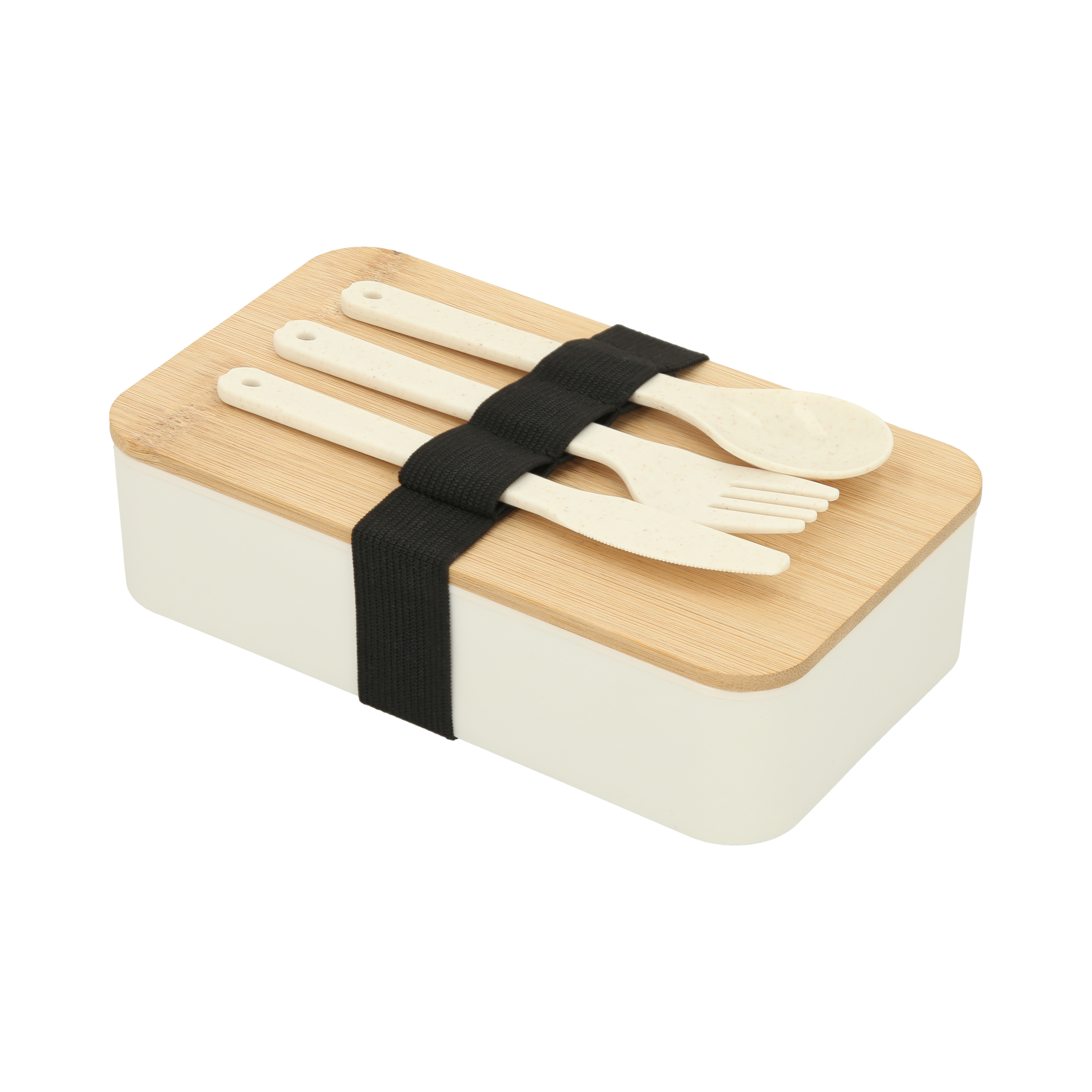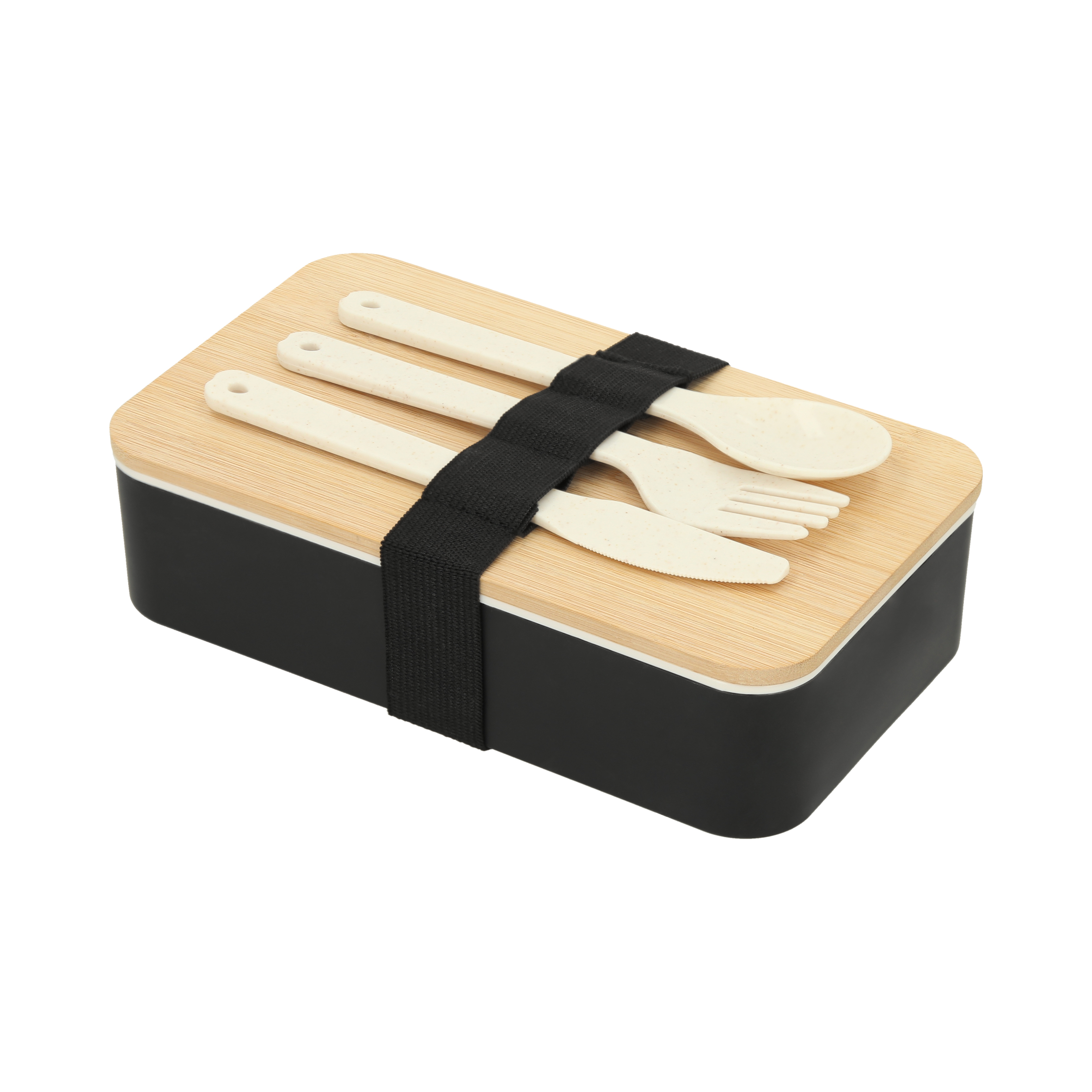 RAMEN Contenedor de alimentos de poliuretano, tapa de bambú, separador de comida y cubiertos (Cuchara, tenedor y cuchillo).