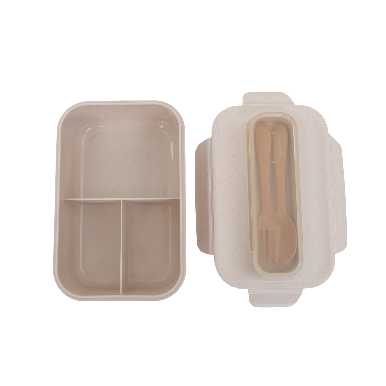 DORO Contenedor de alimentos con 3 compartimentos, tapa con broches de seguridad y 1 compartimento deslizable para tenedor y cuchara en la parte superior.
