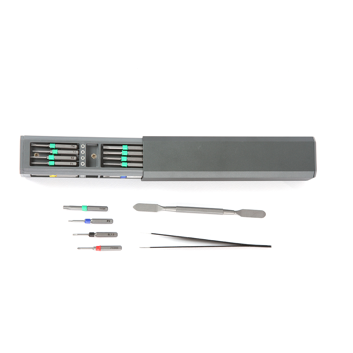 Set Maisse. - Set de destornilladores fabricado en aluminio, plástico ABS, con herramientas fabricadas en acero #45. Este set contiene 30 piezas en total, distribuidas de la siguiente manera: destornillador modelo PH000, PH00, PH0, PH1, SL1.5, SL1.7, SL2.5, SL3.0, T1, T2, T3, T4, T5, H1.5, H2.0, H2.5, T6H, T8H, T10H, T15H, T20H.