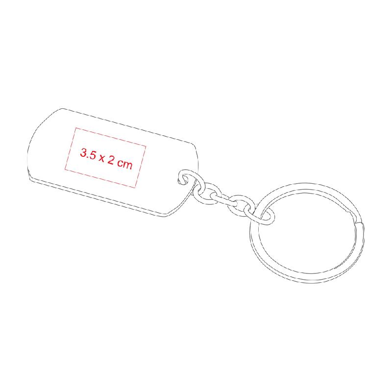 Llavero rectangular. Medidas: 2.8cm x 5.4cm Material: Metal. Empaque: Bolsa de plástico.
