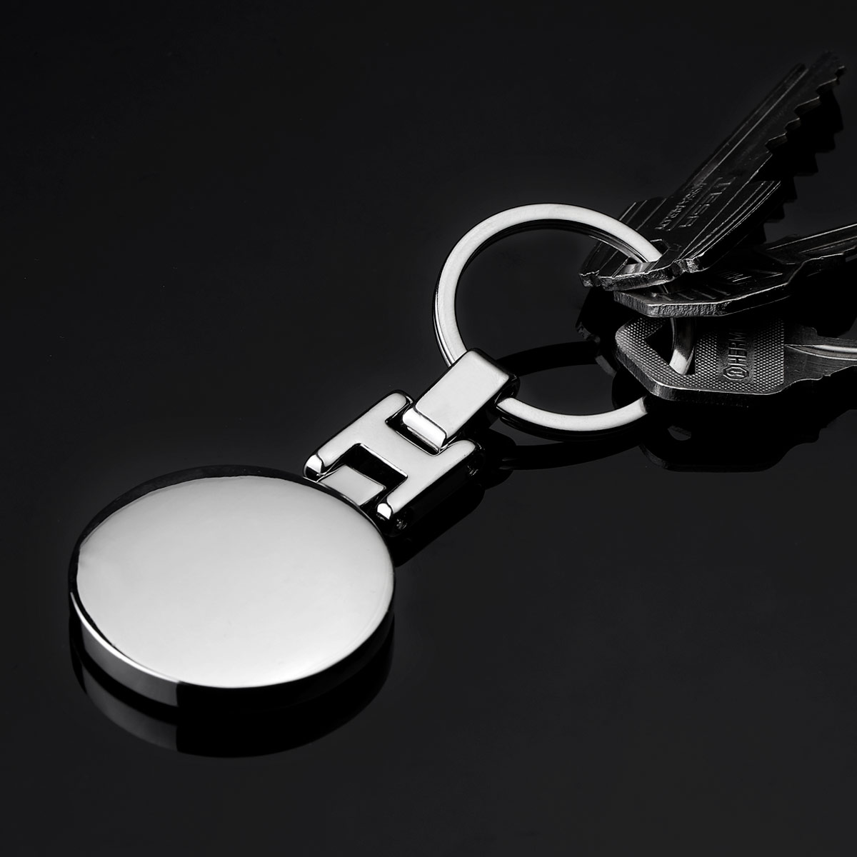 Llavero con 2 argollas, cinta de piel y acabado tipo espejo. Medidas: ...