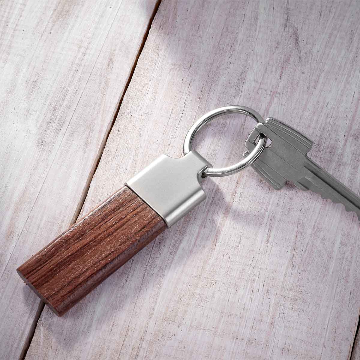 Llavero de bambú Fahan. - Llavero rectangular con placa de bambú rectangular q...