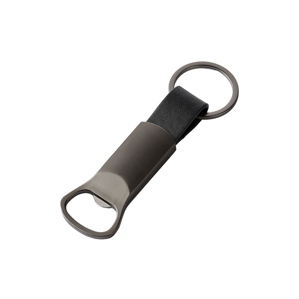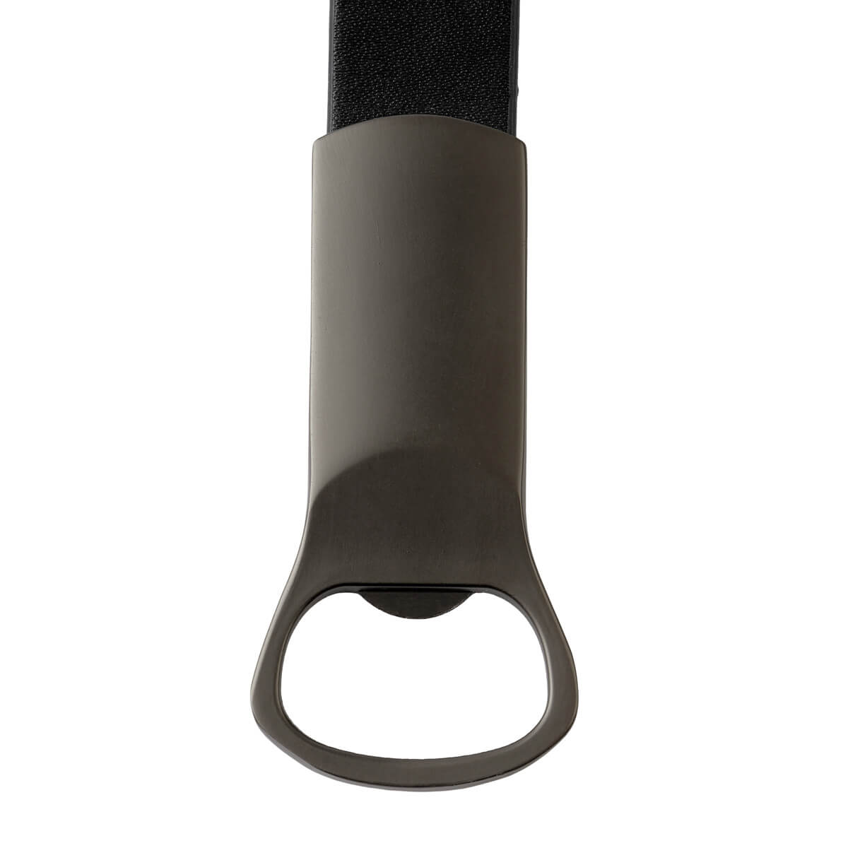 LLAVERO KLUC - Llavero destapador metálico con terminado mate. Detalle en curpiel que estiliza su diseño.