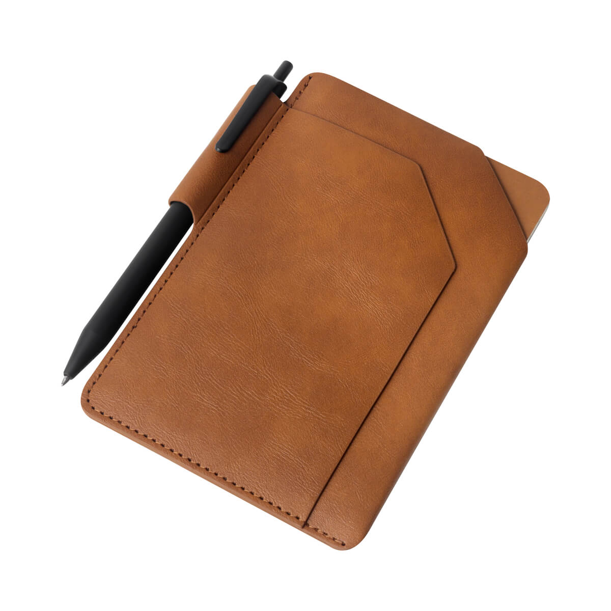 PORTA PASAPORTE RUNA - Funda de curpiel para pasaporte. Incluye un libreta de 32 hojas a raya, un bolígrafo de tinta negra y un práctico compartimento para tu pasaporte. Ideal para viajes y notas rápidas.