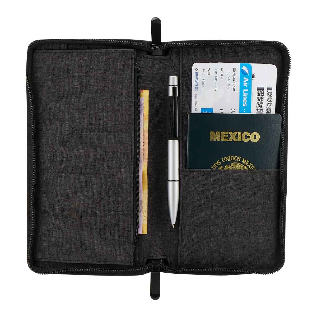 PORTA PASAPORTE WALLY - Compartimento para pasaporte, visa, boleto de avión, elástico para bolígrafo y 1 compartimento con cierre. Bolígrafo no incluido.