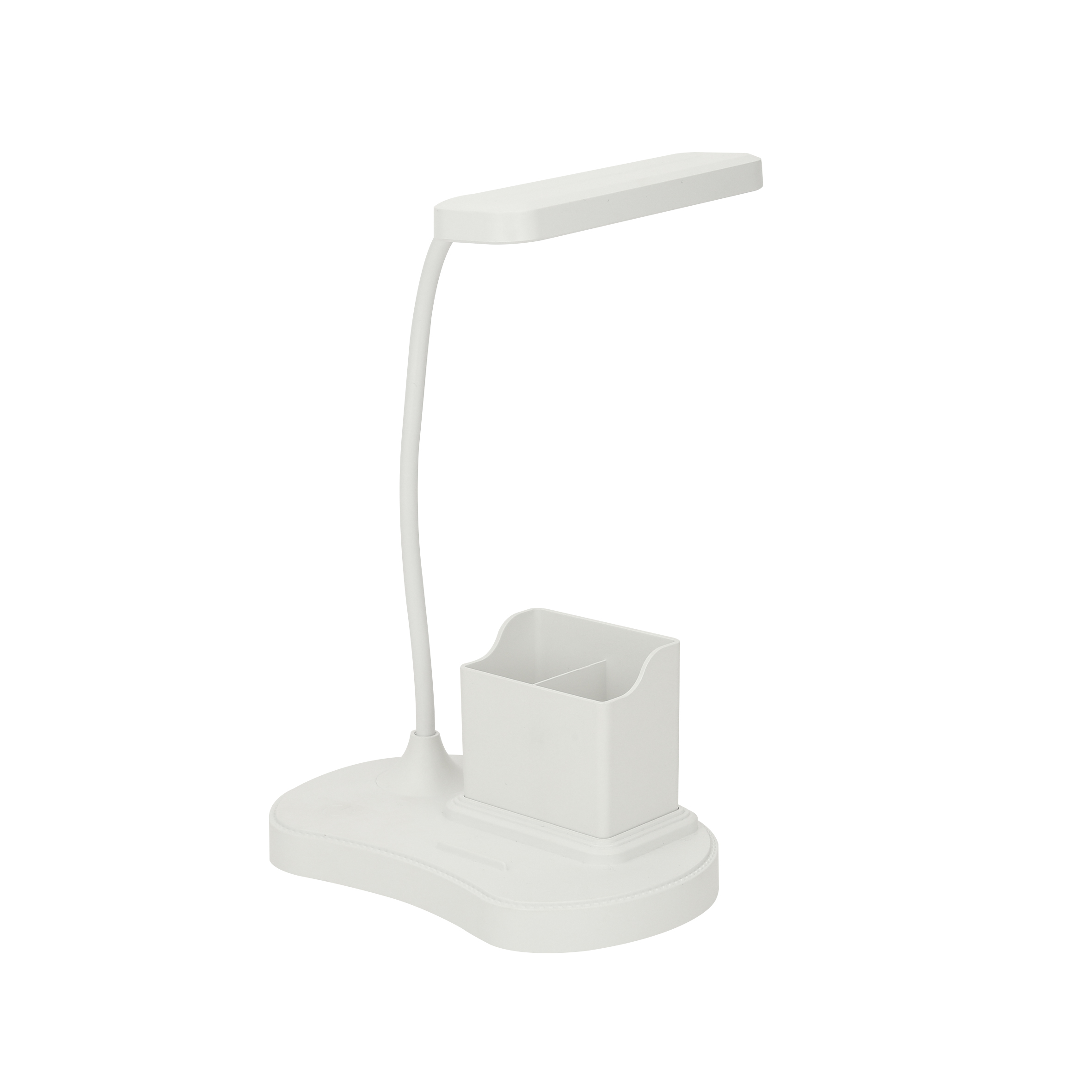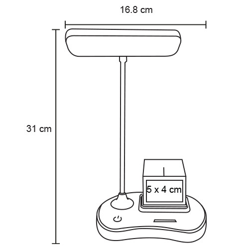 SHAZAM Lámpara para escritorio con multi organizador, luz cálida y blanca, soporte para celular y potencia de 4w. Incluye cable para conexión.