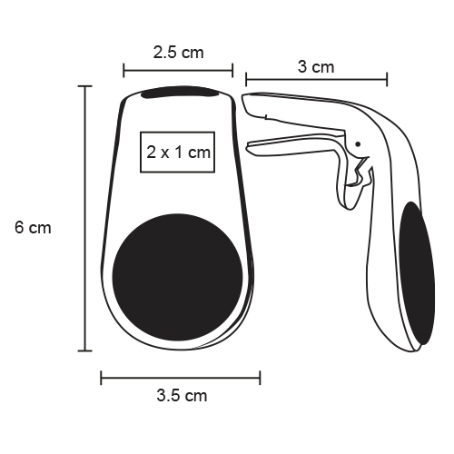 MOON Sujetador de auto para dispositivos móviles. Incluye imán que se adhiere a la parte trasera del móvil.