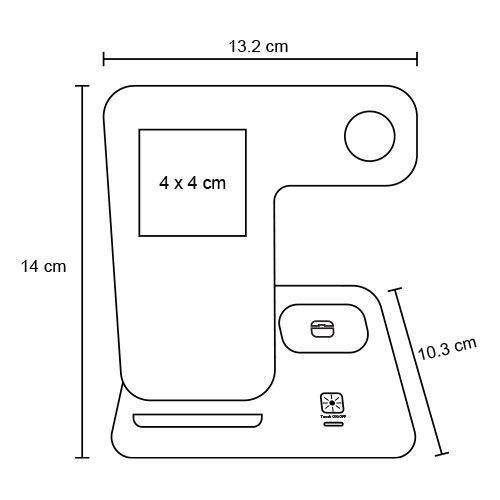TAUTÓN Multicargador inalámbrico para smartphone, audífonos inalámbricos, reloj inteligente y lámpara en la base, 4 en 1. Incluye cable con conector tipo C. (Compatible para dispositivos con tecnología Qi).
