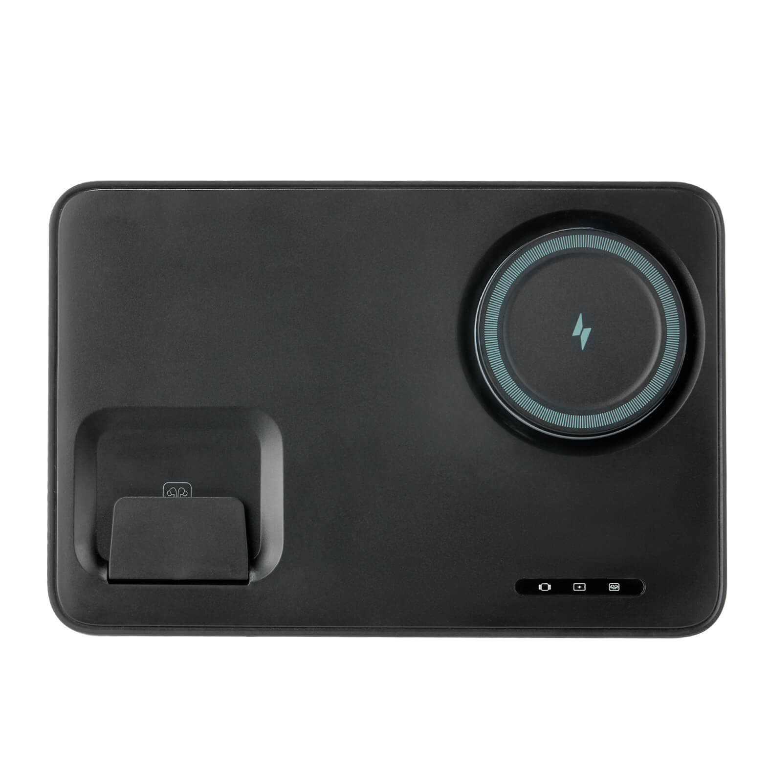 KYLE Multicargador inalámbrico 3 en 1 para smartphone, audífonos y reloj inteligente. Incluye cable de carga Tipo C. Compatible con dispositivos con tecnología Qi.