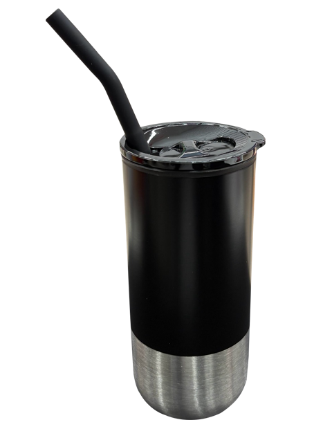 DALI Termo sublimable con doble pared de acero inoxidable, acabado glitter, tapa de plástico a presión con boquilla deslizable y popote metálico.
