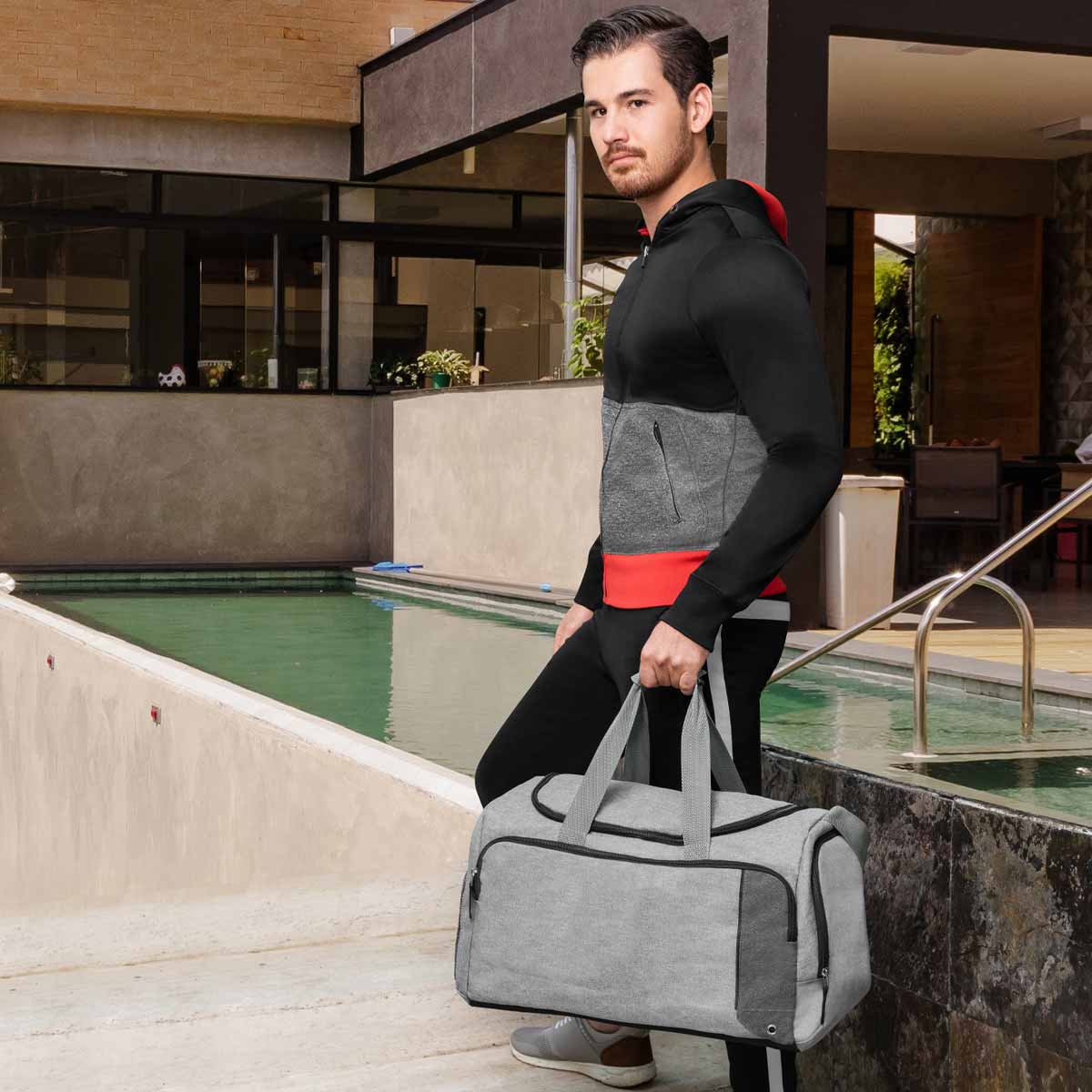 MALETA QUARTEIRA - Bolsa principal y frontal con cierre. Incluye bolsa lateral de red, bolsa lateral con cierre, asas y correa para hombro ajustable.