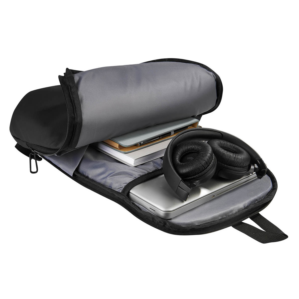 MOCHILA EBELE - Bolsa principal con cierre y compartimento interior para laptop de hasta 15". Incluye bolsillo frontal superior y bolsillo frontal con cierre cruzado. En la parte posterior cuenta con tirantes para hombro ajustables, respaldo acolchado y banda que facilita su transporte en trolley.