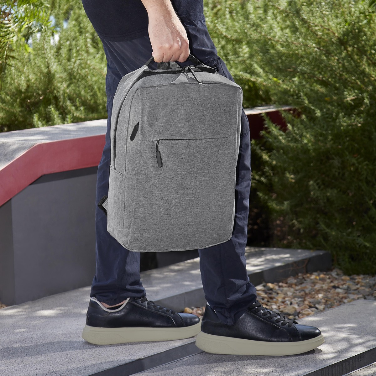 MOCHILA NOOYI - Mochila estilo casual. Bolsa principal con cierre, incluye compartimiento para laptop de hasta 15" y bolsillos organizadores para mantener tus objetos pequeños en orden y con fácil acceso. Su diseño agrega un bolsillo frontal con cierre vertical, ideal para llevar libretas pequeñas o accesorios indispensables. Además, cuenta con otro bolsillo frontal con cierre. En la parte posterior, incluye banda para colocar en trolley.