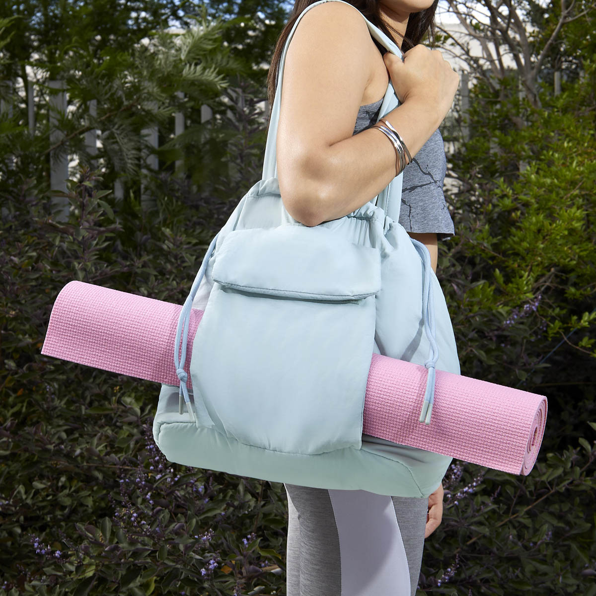 BOLSA JOOGA - Bolsa deportiva, ofrece amplio espacio para llevar tus artículos esenciales o accesorios deportivos, también cuenta con un compartimento dedicado para transportar tu tapete de yoga. Incluye compartimento principal con cierre por medio de jareta y bolsillo frontal de velcro. Sus asas lagas y su diseño ergonómico garantizan comodidad durante el transporte, mientras que su estilo moderno la convierte en un accesorio imprescindible tanto para el gimnasio como para tus sesiones de yoga al aire libre.