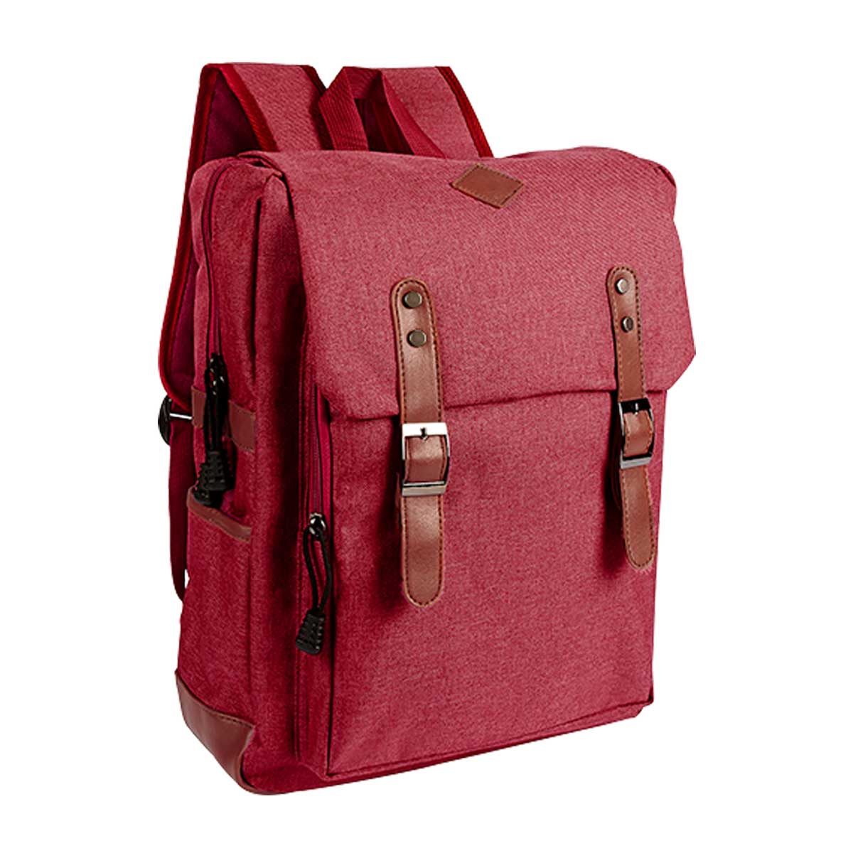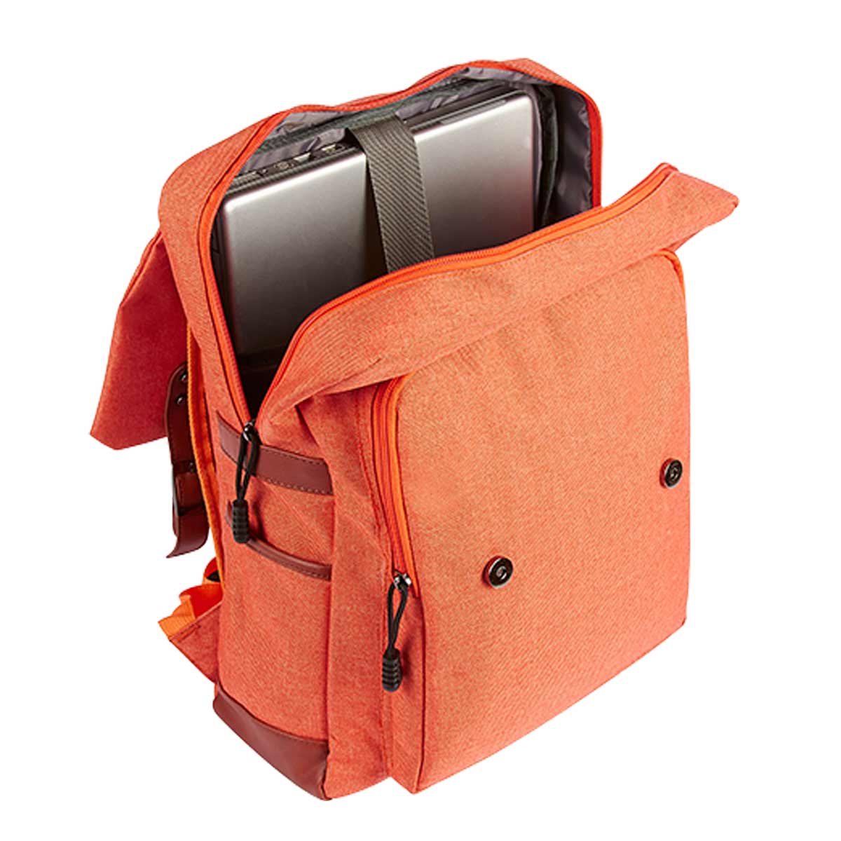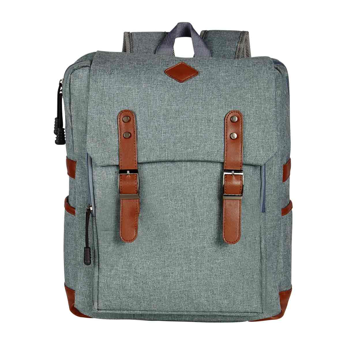 MOCHILA SKADI - Bolsa principal y frontal con cierre. Compartimento para laptop hasta de 15". 2 bolsas laterales. Solapa frontal con broches de imán estilo hebilla. Cuenta con asa de agarre superior.
