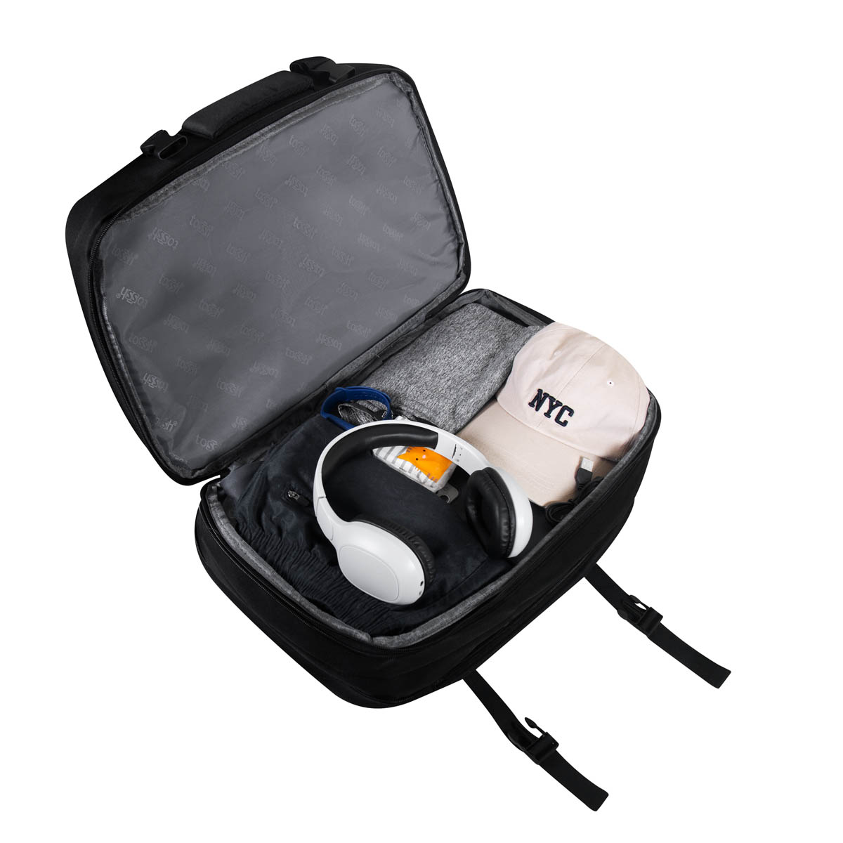 MOCHILA REIZIGER - Mochila con amplios espacios diseñados para todas tus pertenencias personales. Esta mochila cuenta con un compartimento acolchado para laptop de hasta 16". Su capacidad de almacenamiento se expande fácilmente para adaptarse a tus necesidades. Equipada con una agarradera superior y lateral lo que te ofrece trasladarla de manera versátil. Las asas acolchadas para llevar en la espalda garantizan comodidad durante todo el día, mientras que la conveniente salida USB te permite cargar tu dispositivo móvil sobre la marcha. Además, la banda en la parte posterior facilita su transporte en trolley.