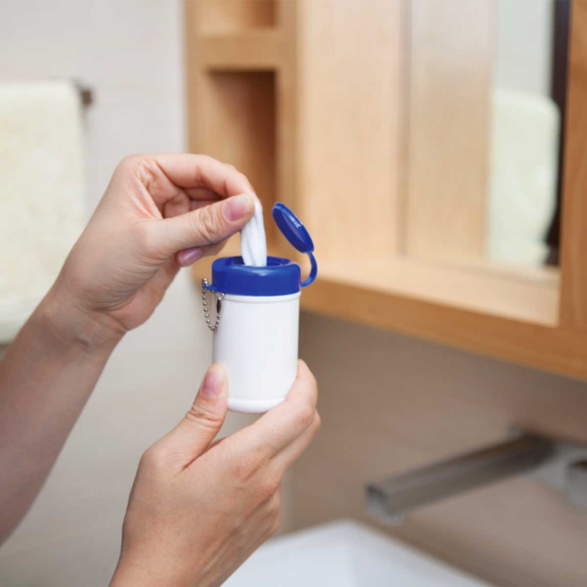 TOALLITAS SALVIA - Contiene 30 toallitas húmedas. Incluye cadena metálica.