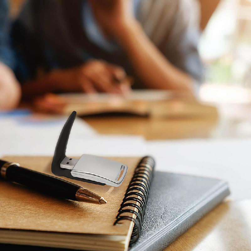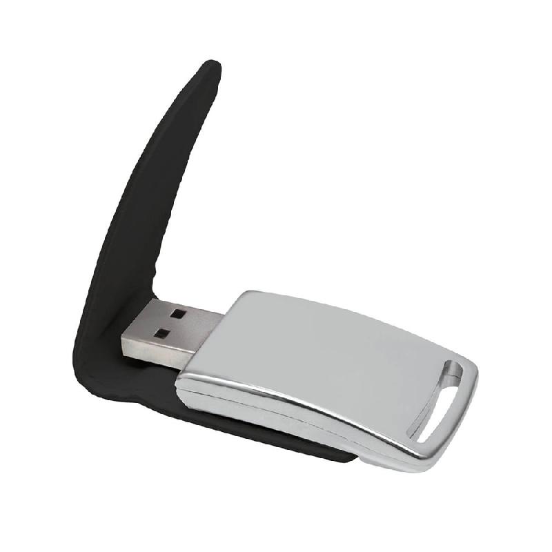 Memoria USB ejecutiva de clip. La combinación de piel y metal le dan un aspecto elegante. Medidas: 11.5 x 2.5 x 1 cm Material: Piel. Empaque: Bolsa de celofán.