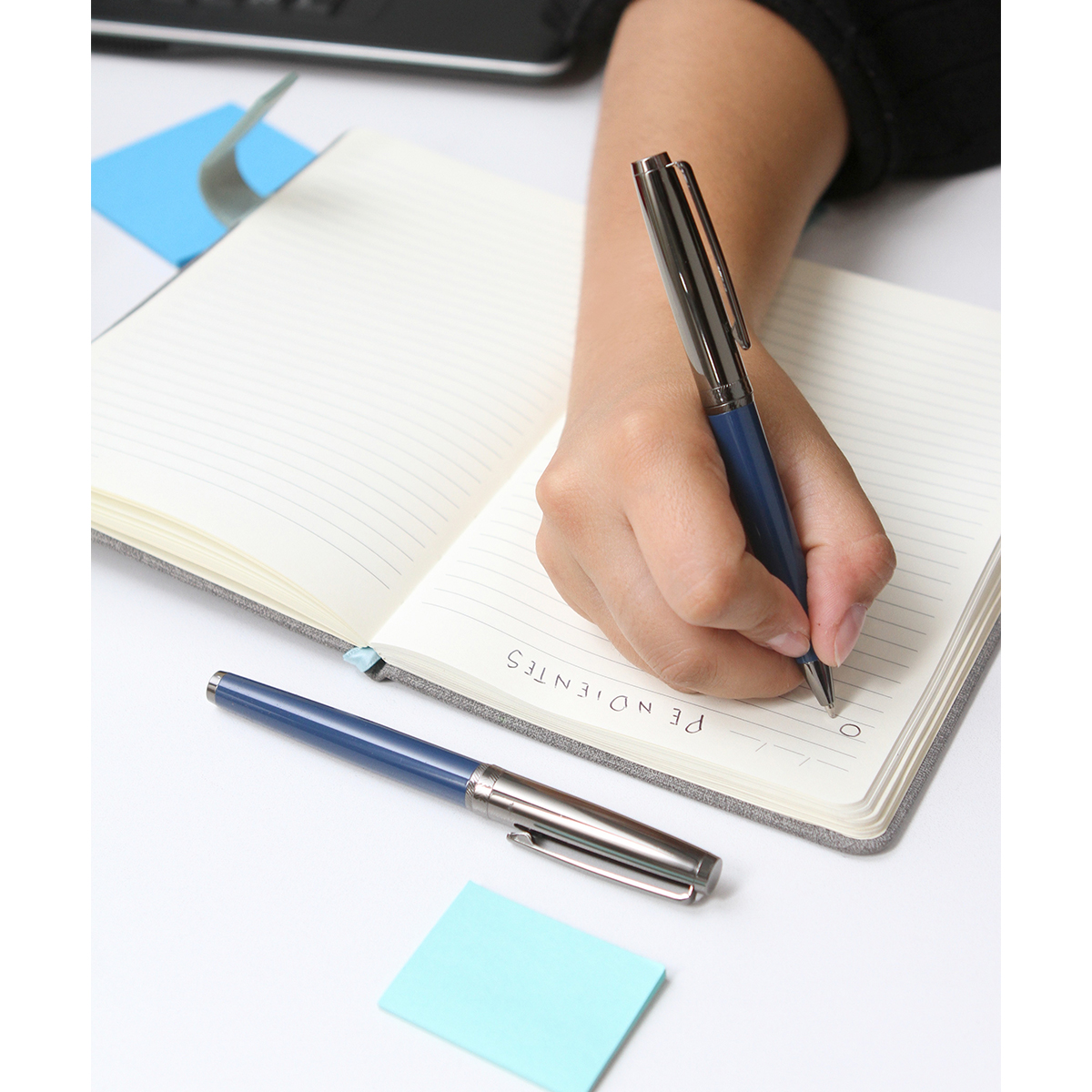Set de bolígrafos Aranjuez. - Set de bolígrafos ball pen y roller pen con barril lacado, punta y clip metalicos en estuche de cartón. Tinta de escritura negra.