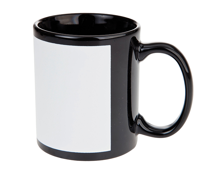 VENUS - Tarro negro con cuadro blanco de sublimación. CAP. 325 ml. (11 OZ). Temperatura y Tiempo sugeridos para sublimar: 180 grados / 160 seg. Venta en múltiplos de 12.