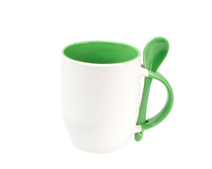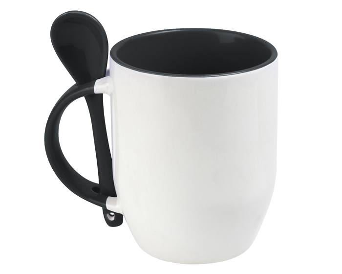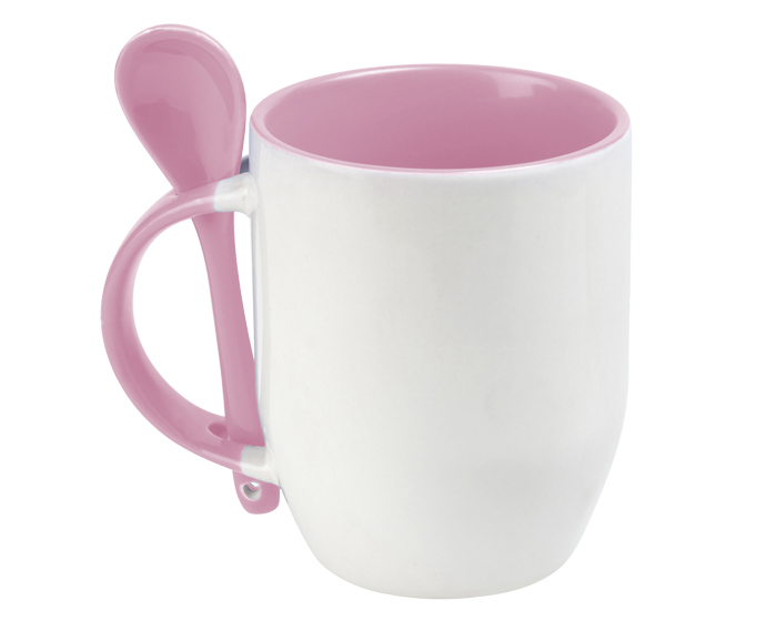MAGGIE - Taza para sublimación con cuchara, asa e interior de color. CAP. 350 ml. (12 OZ). Presentación: Caja en color blanco.
