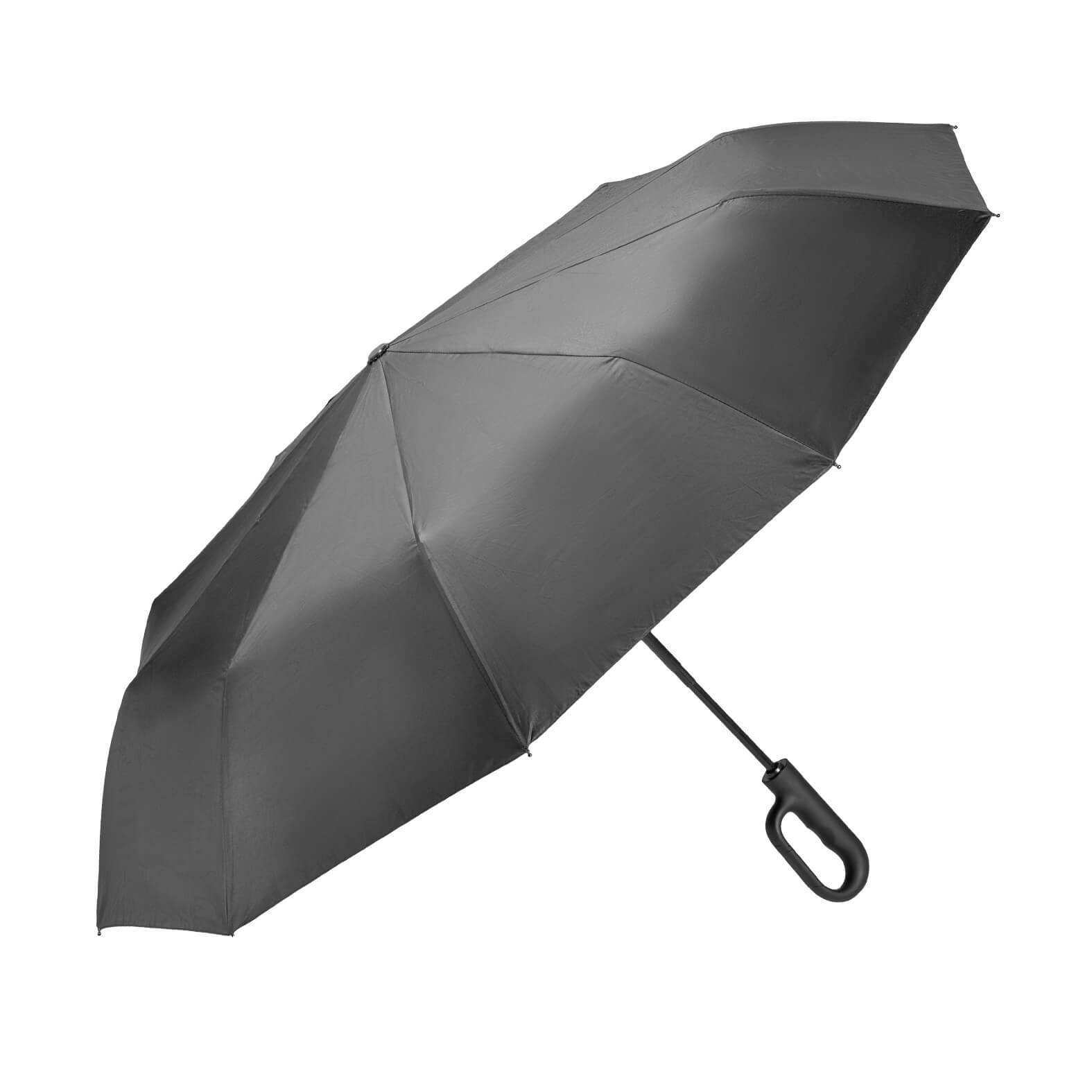 ROSBI Paraguas de bolsillo con sistema de apertura y cierre automático, 10 gajos, broche de velcro, mango con acabado rubber y gancho para bolsas. Incluye funda.