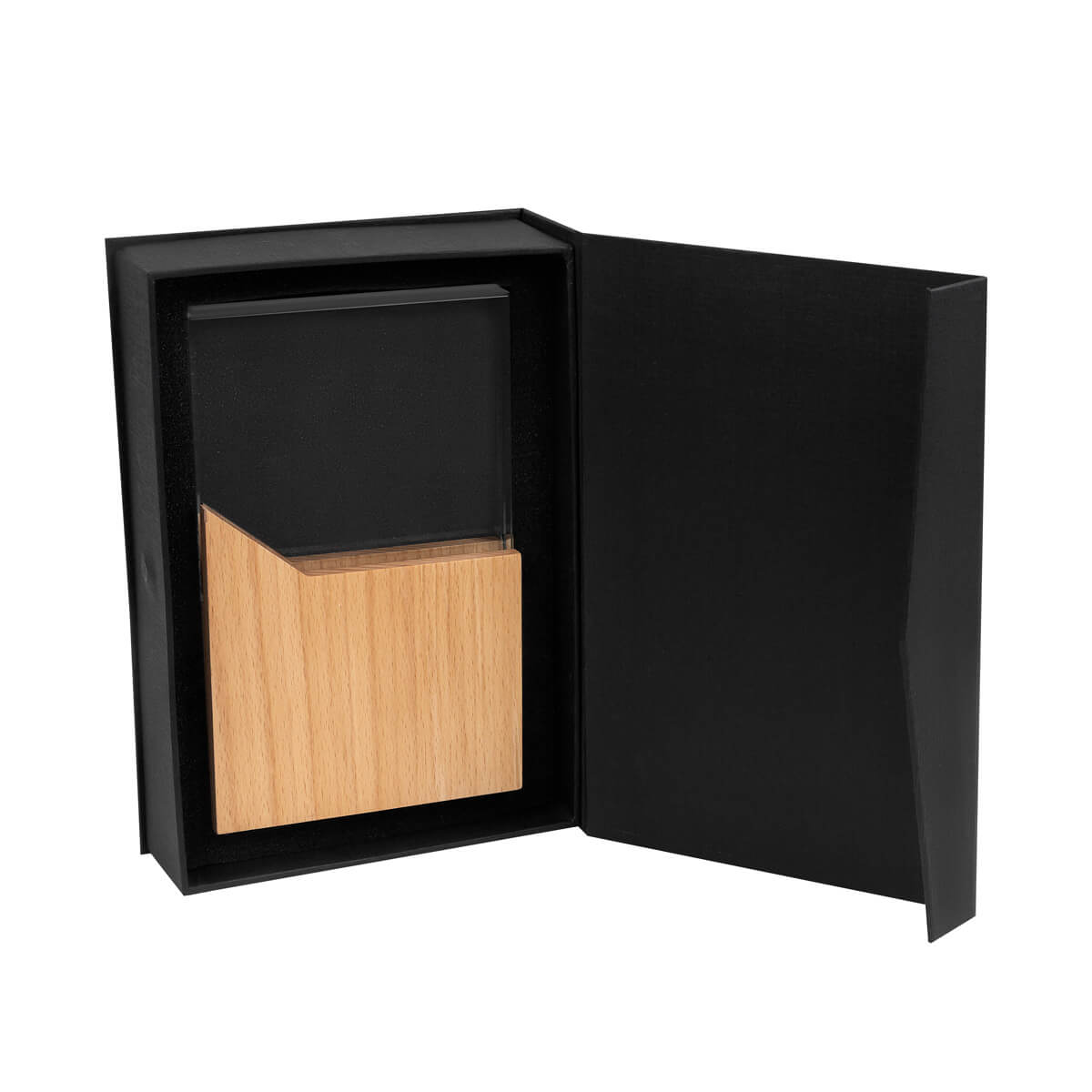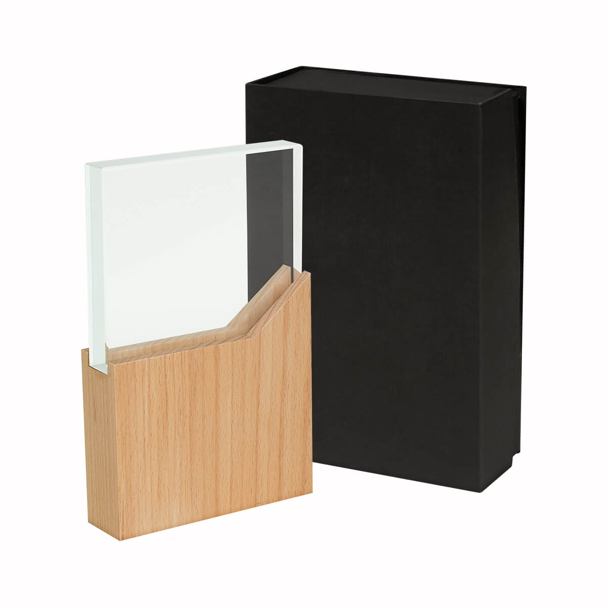 RECONOCIMIENTO LYNOR - Elegante y clásico reconocimiento que combina vidrio y madera de pino. Perfecto para destacar los logros y celebraciones especiales. Incluye caja de regalo con broche imantado para cerrar y esponja interna para protección. La madera es un producto natural el cual puede presentar variaciones en tonalidades y vetas