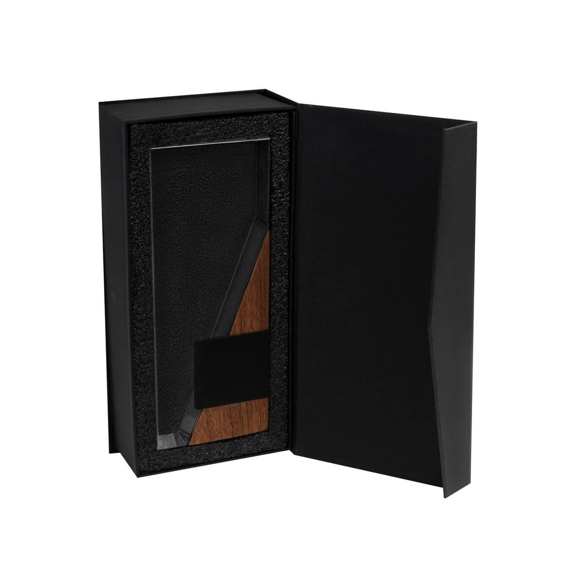 MATERIAL: Vidrio / Madera / Metal MEDIDAS: 8.3 x 21.1 x 3.9 cm Reconocimiento / 12 x 24.2 x 5 cm Caja IMPRESION: Grabado Arena / Láser MED. EMPAQUE: 27 x 35 x 26.5 cm PESO EMPAQUE: 1.66 Kg PIEZAS EMPAQUE: 10