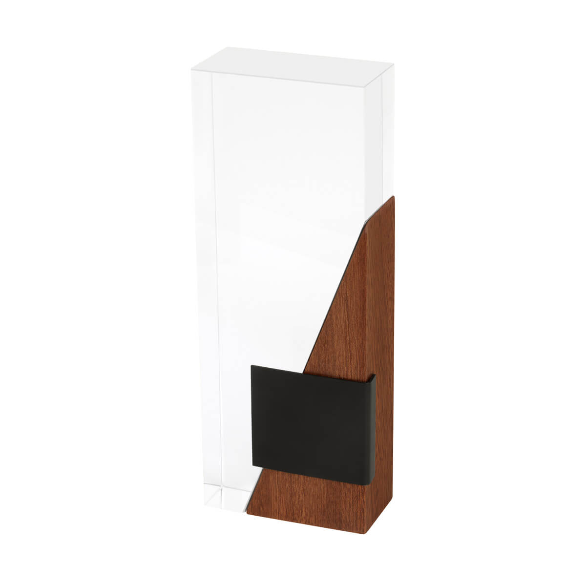RECONOCIMIENTO AURIX - Reconocimiento asimétrico que combina materiales como vidrio, madera y metal, destacando un diseño moderno y minimalista. Cuenta con una placa metálica para su fácil grabado. Destaca un evento memorable, una mención honorifica o celebración especial. Incluye caja de regalo con broche imantado para cerrar y esponja interna para protección. La madera es un producto natural el cual puede presentar variaciones en tonalidades y vetas