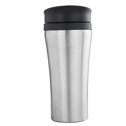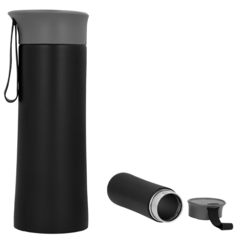 MIKA Termo con doble pared de acero inoxidable, tapa hermética enroscable y botón de seguridad para evitar derrames.