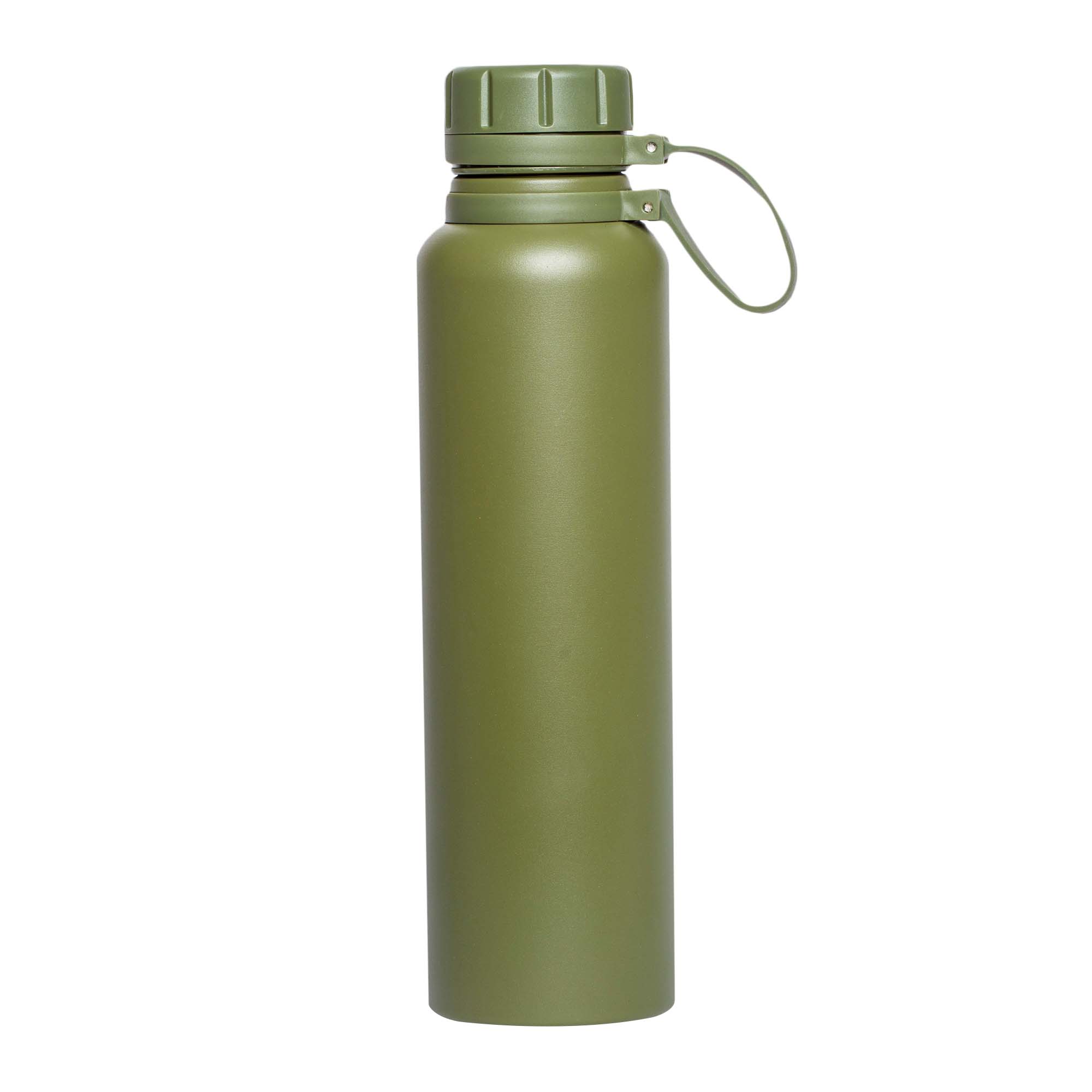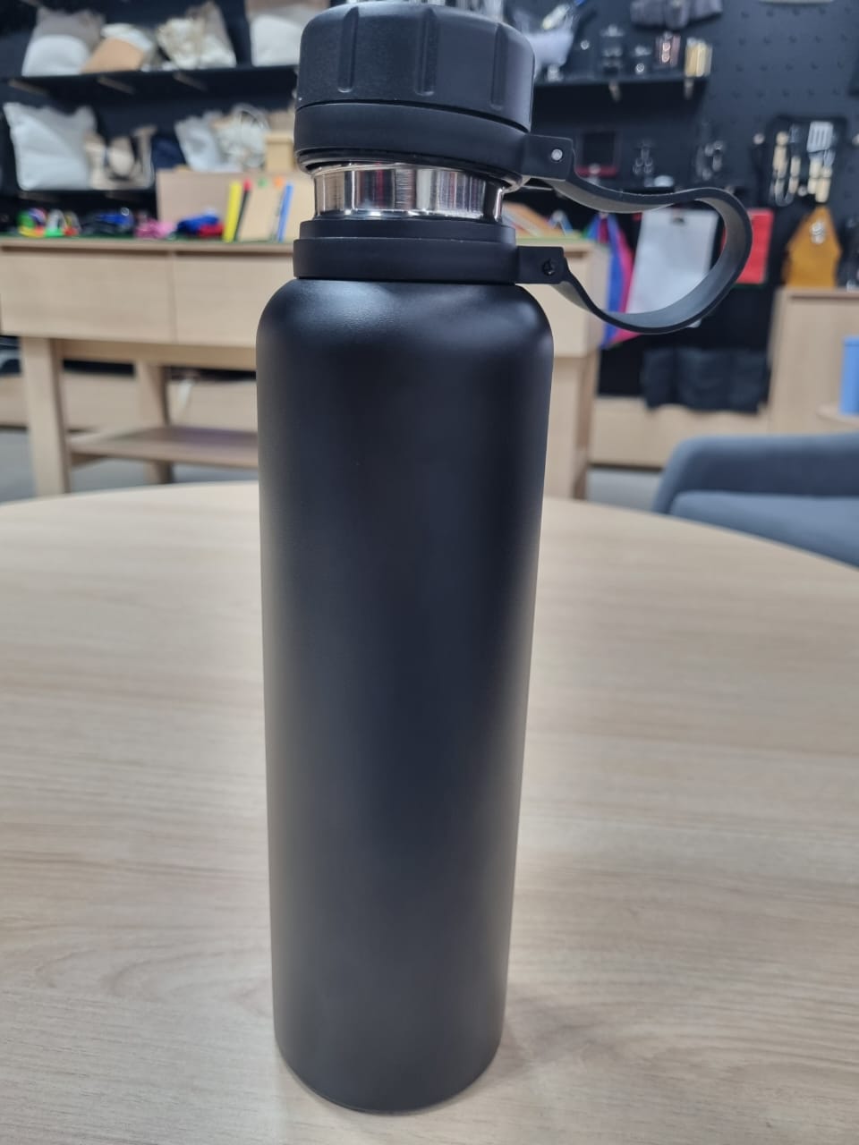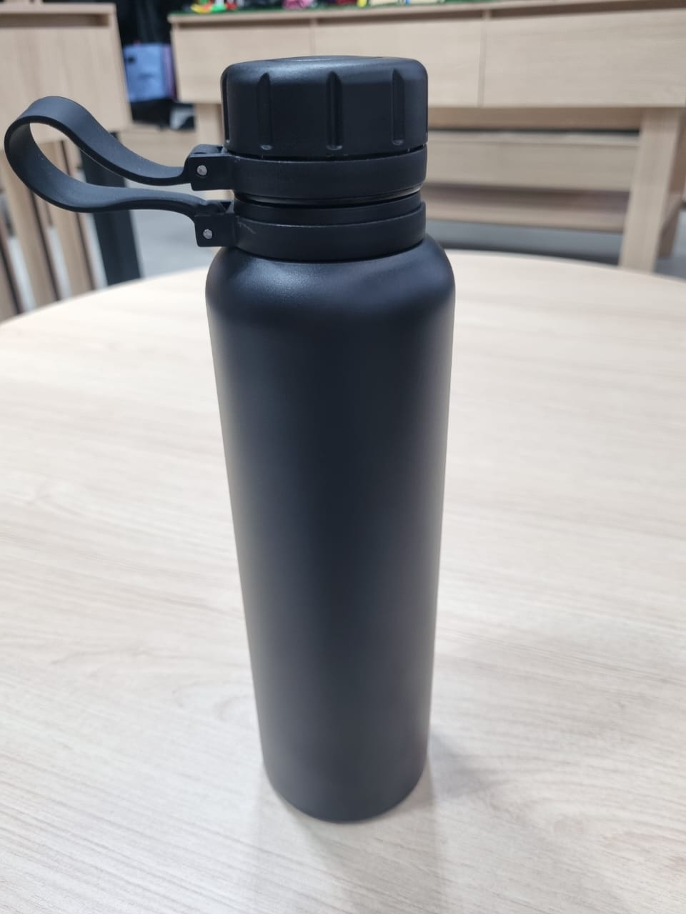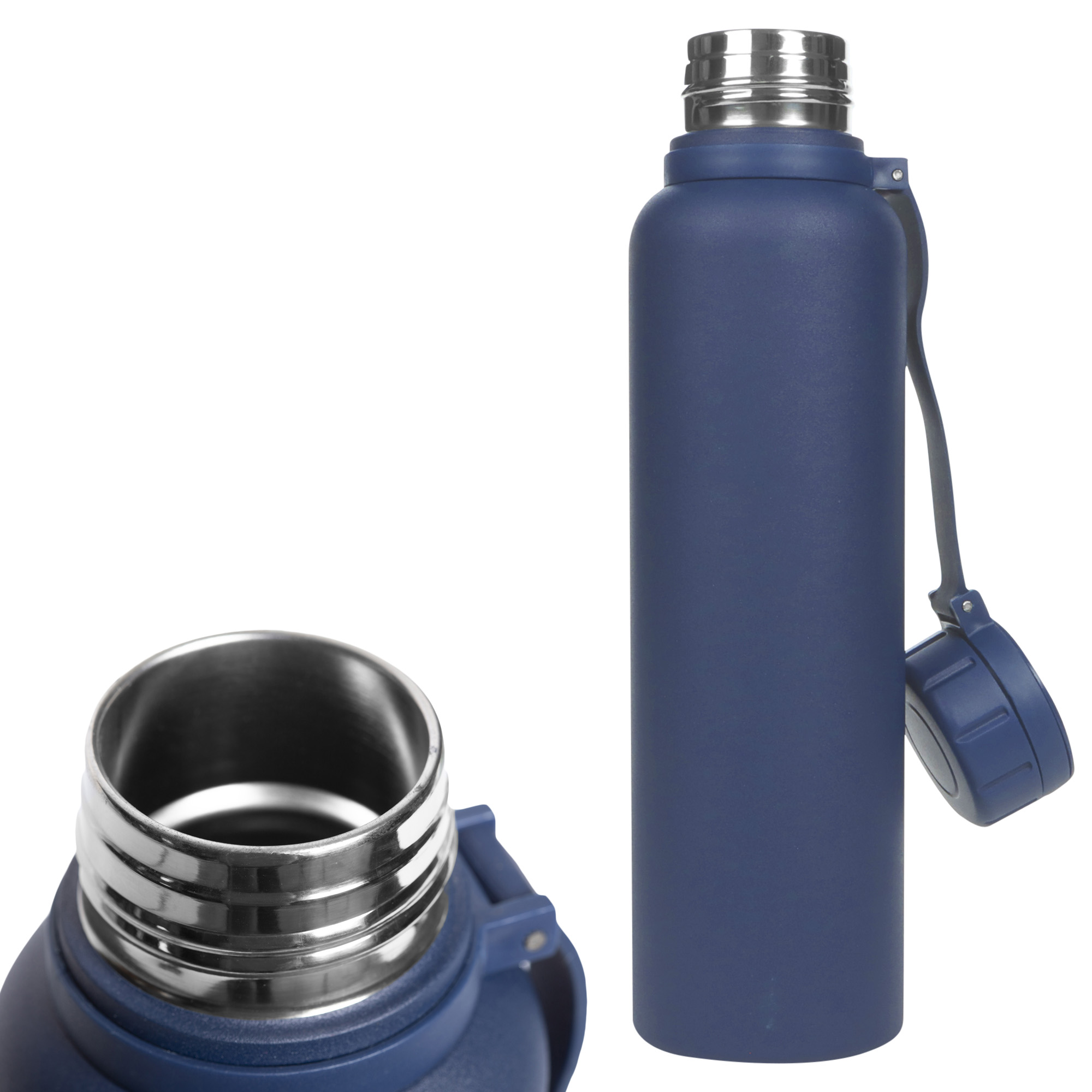 MARVEL Termo de doble pared de acero inoxidable con acabado rugoso, insulado al vacío con tapa enroscable y correa de silicón.