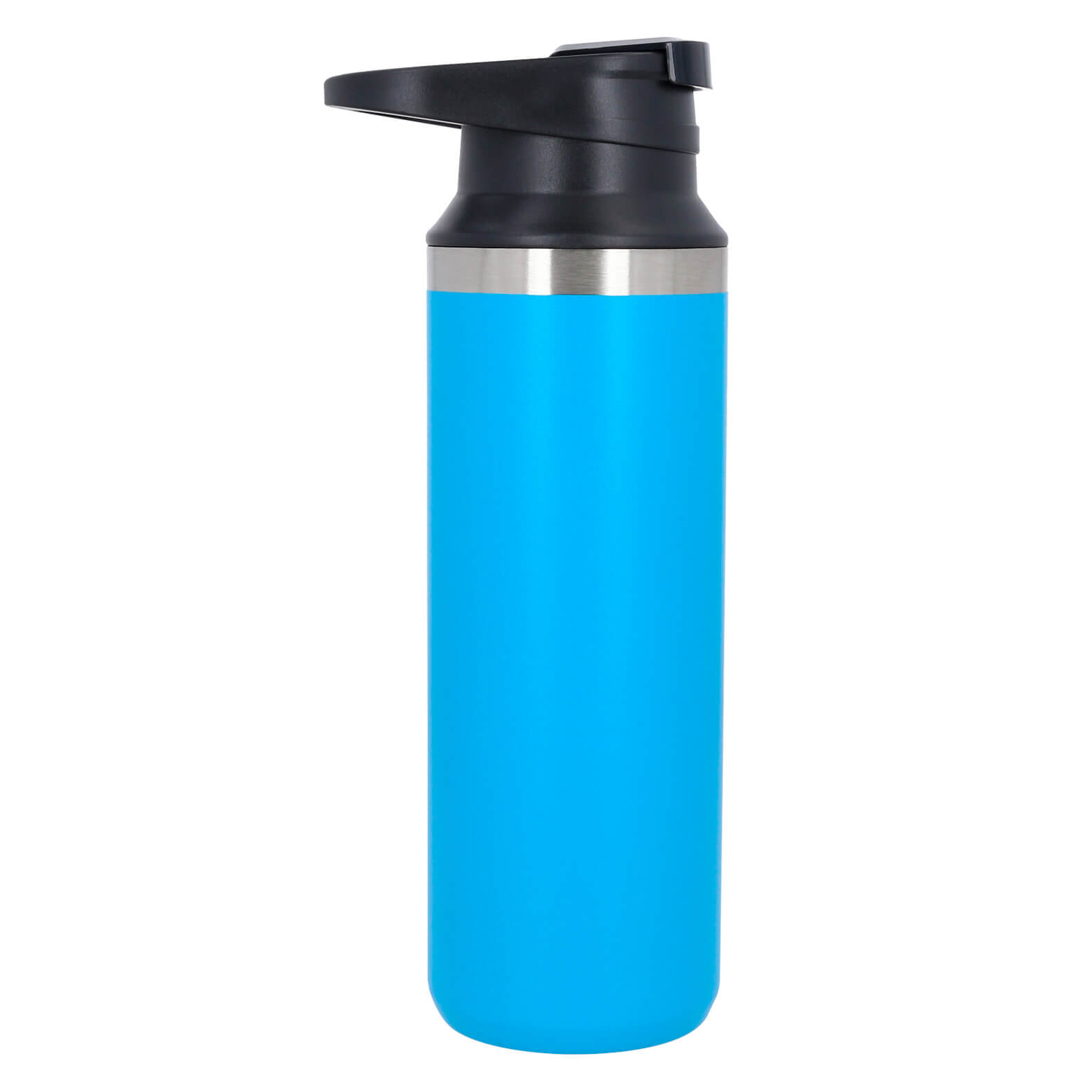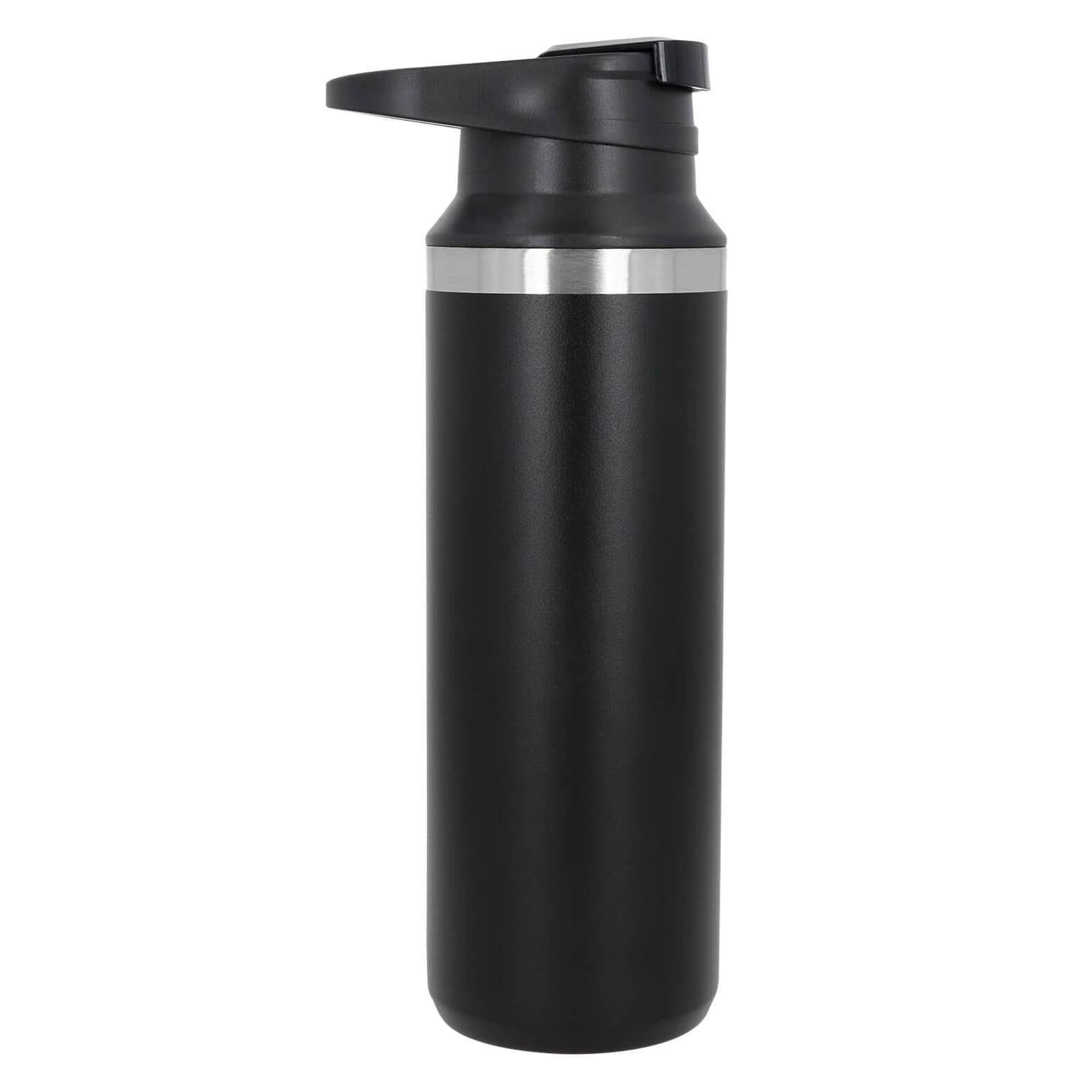 DARYA Termo con doble pared de acero inoxidable, insulado al vacío y acabado rugoso. Incluye tapa enroscable con boquilla de cierre a presión y asa.