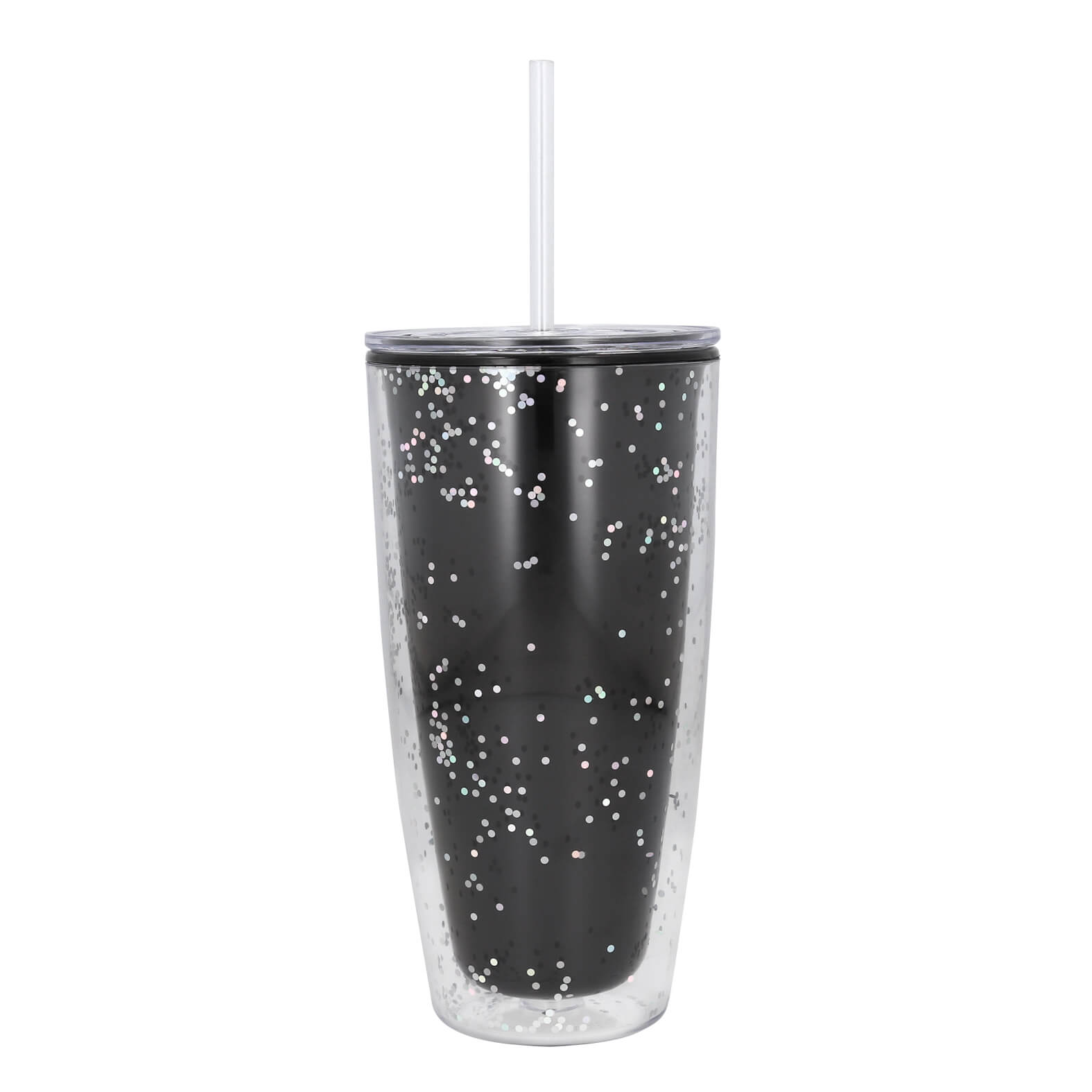 KIELER Vaso con doble pared de plástico, tapa enroscable y popote.