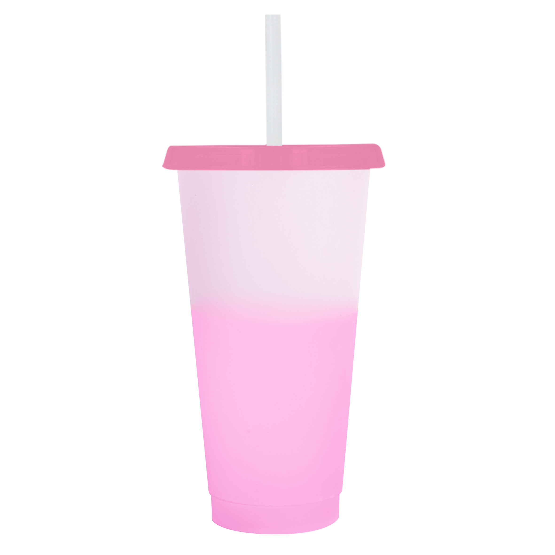 CROMATIC Vaso de plástico con acabado frost degradado y tapa solida. (Incluye popote).