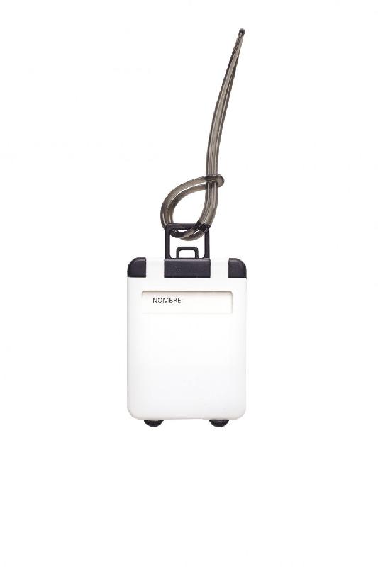 IDENTIFICADOR DE EQUIPAJE "TAG IT" Identificador en forma de valija / maleta. Cuenta con etiqueta para datos personales. Lazo de plástico para colgar en la manija del equipaje.