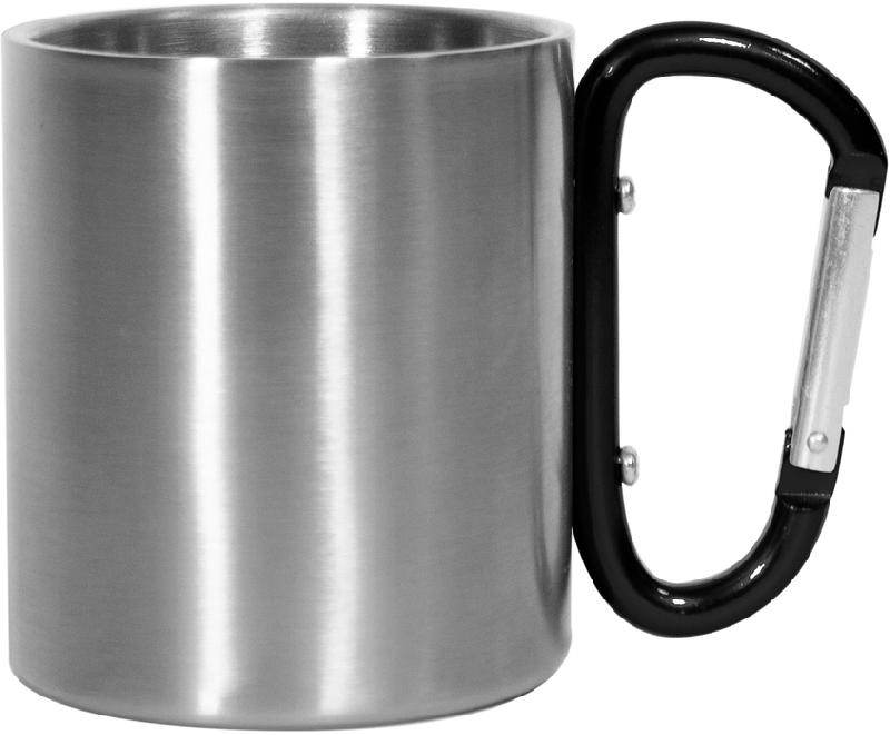 MUG ¨CARIBE¨ Mug doble pared con Mosquetón. Interior de acero 304 y exterior de acero 201. Asa carabinero de aluminio con diferentes opciones de color. Mantiene las bebidas frías y calientes por más tiempo. Te acompaña donde vayas, ideal para camping o cualquier actividad al aire libre.