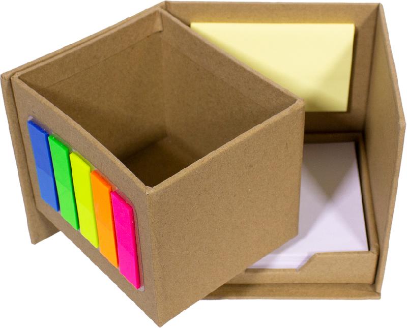 WAL Estuche ecológico rígido en forma de cubo. Contiene block de notas, bander...