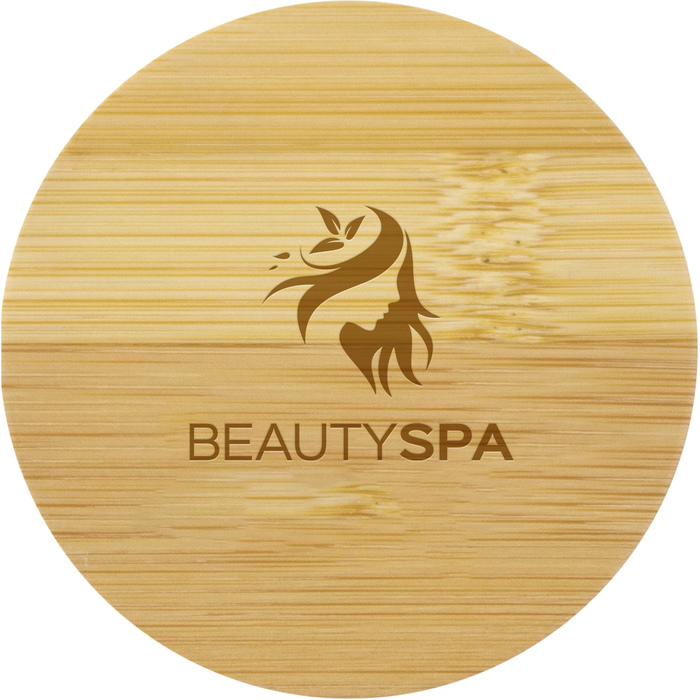 MATERIAL: Bambú y vidrio MEDIDAS: 7,3 cm. Espesor 8mm IMPRESION: Serigrafía, tampografía, grabado láser MED. EMPAQUE: 22,50 x 34,00 x 32,50 cm PESO EMPAQUE: 500 pzs PIEZAS EMPAQUE: 500 pzs