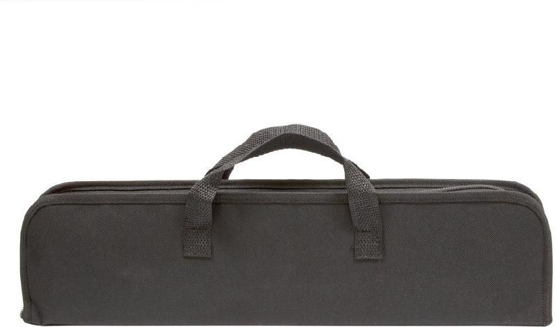 SET DE ASADO / BBQ "ANGUS" Set de 4 utensilios: tenedor y cuchillo de 41 cm, pinza de 44,5 cm y espátula de 40 cm de largo, todos con mango plástico en color negro. Estuche de nylon 600 D color negro con cierre. Calidad Premium.