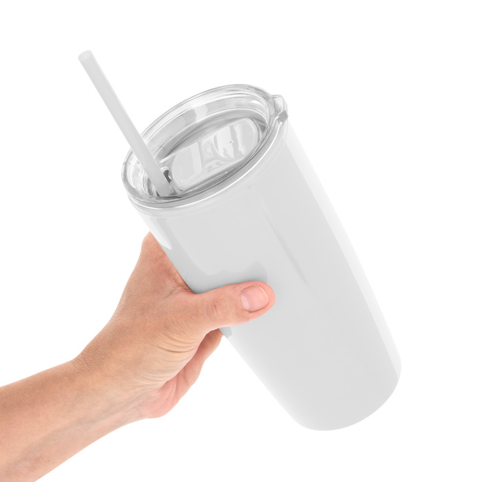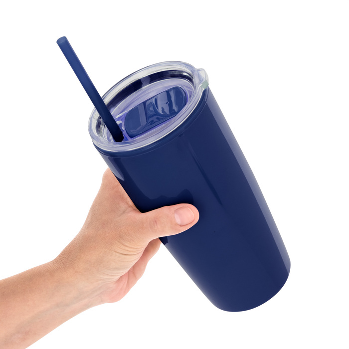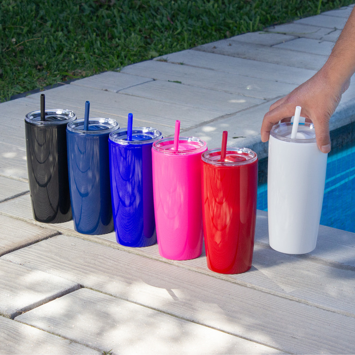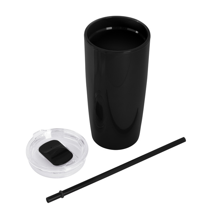 Mug "TOMMY" Disfruta de tus bebidas favoritas con comodidad. Doble pared con popote. Tapa plástica transparente a presión con anillo de silicona. Popote de polipropileno y cierre deslizante del mismo color que el cuerpo. Cuerpo con acabado brillante.