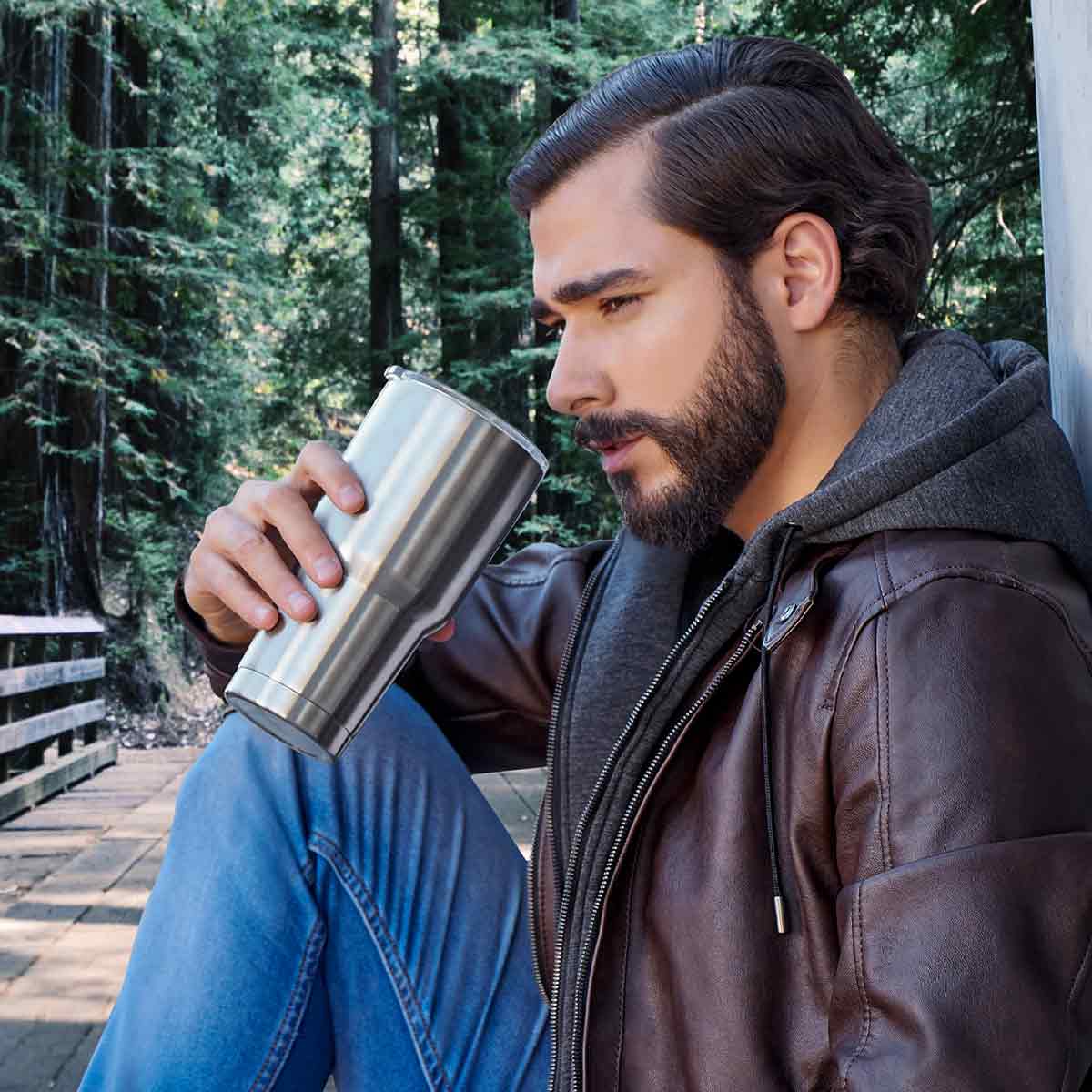 JAGUAR Cilindro de acero inoxidable con tapa enroscable, boquilla abatible, popo...