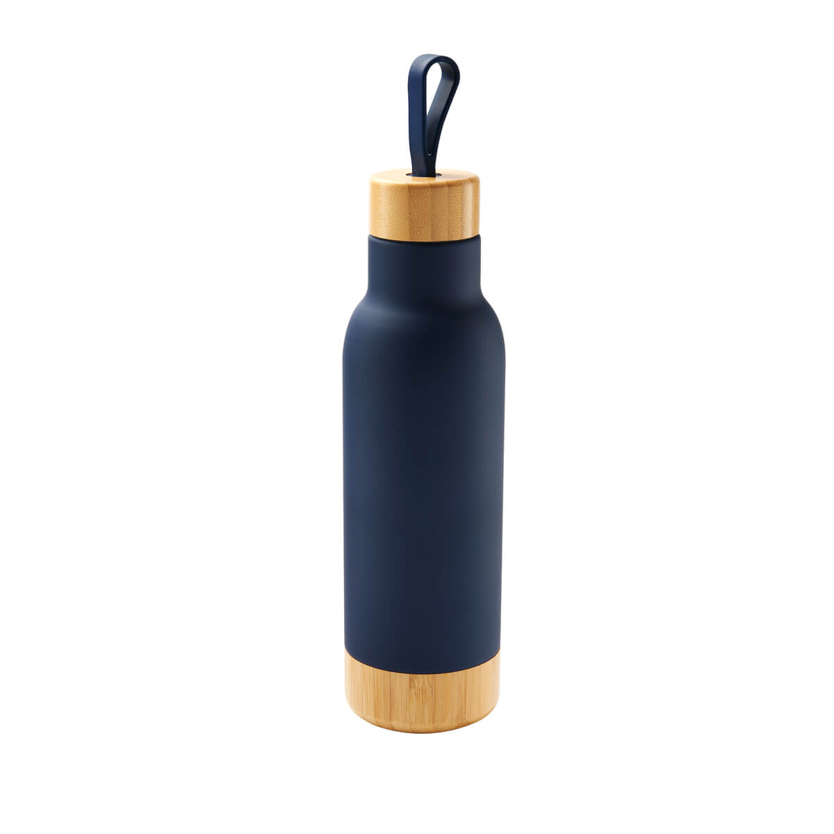 TERMO BAI - Doble pared. Cerrado al vacío. Pared interna y externa de acero inoxidable. Tapa de bambú con sistema de rosca, asa de silicón y base de bambú. Mantiene temperatura caliente 6 hrs y temperatura fría 12 hrs. Incluye caja individual.