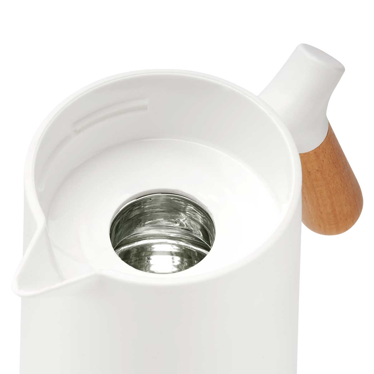 JARRA TÉRMICA SHALÁ - Jarra térmica doble pared. Interior de vidrio y exterior de plástico. Tapa con botón dispensador y asa de bambú. Base removible con sistema de rosca que permite retirar fácilmente el interior para una mejor limpieza. Mantiene temperatura caliente y fría 6 hrs. Incluye caja individual. El bambú es un producto natural el cual puede presentar variaciones en tonalidades y vetas.