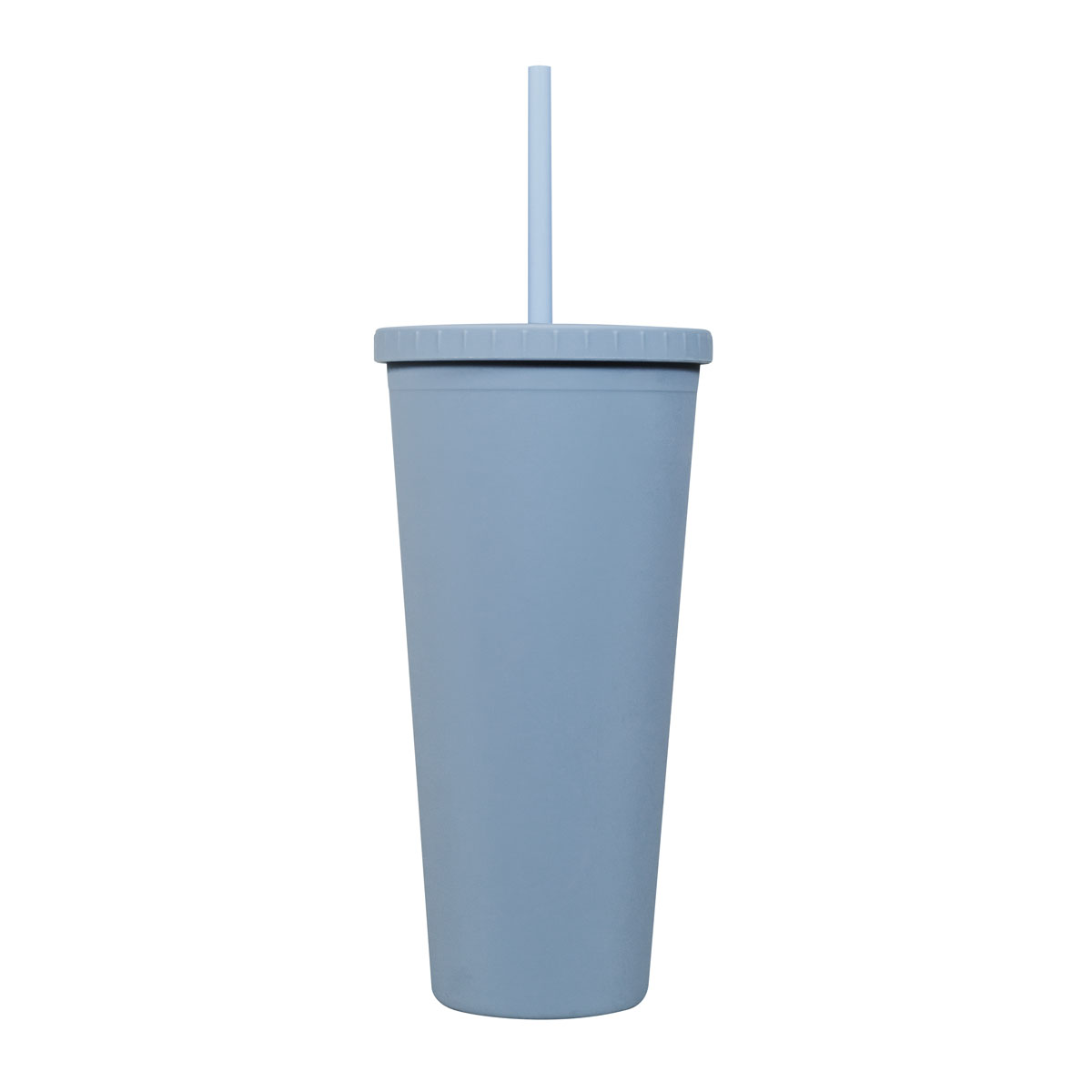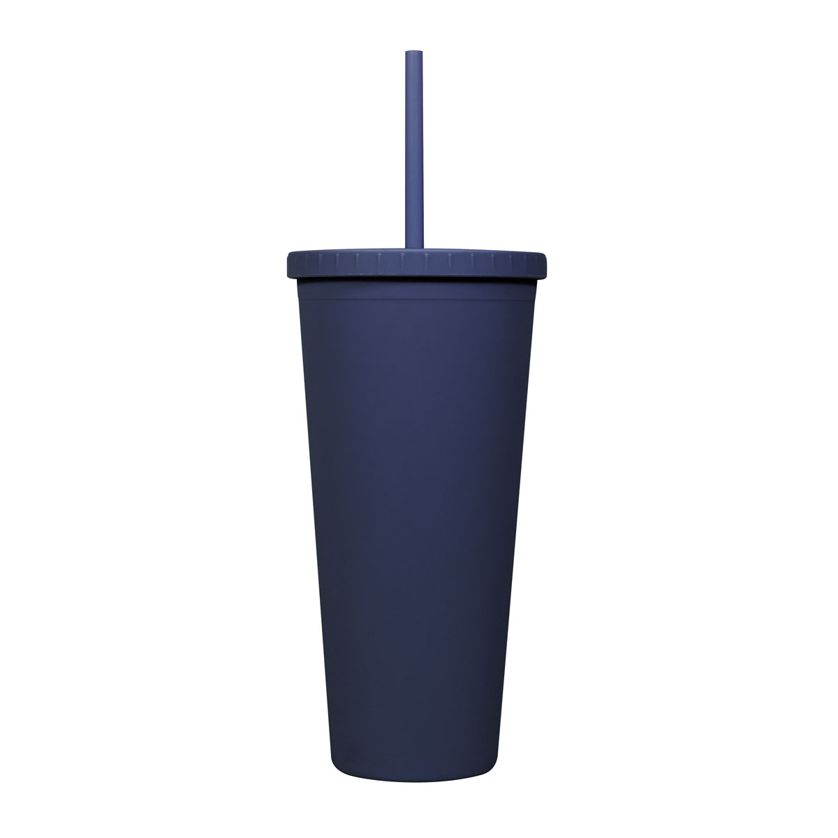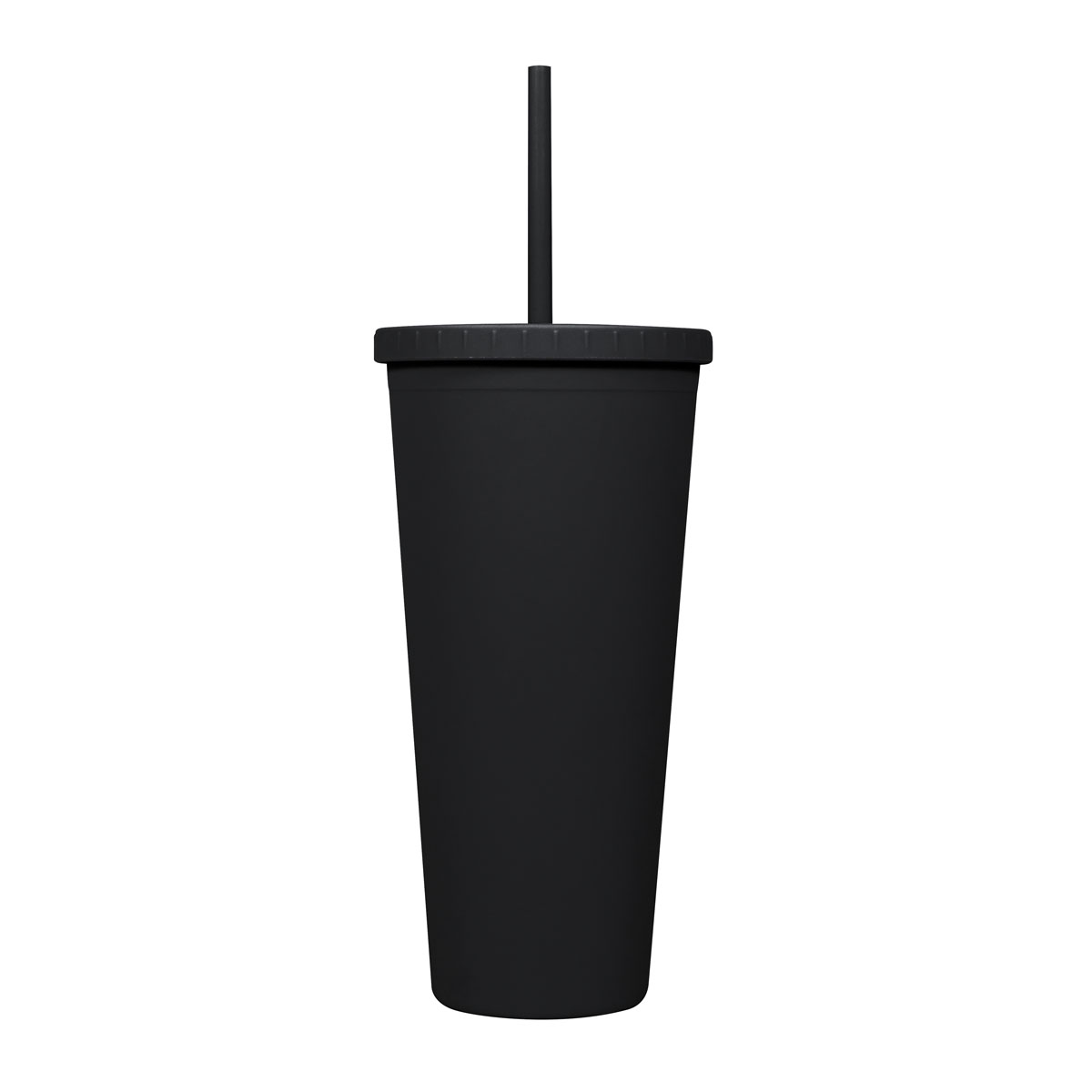VASO BLAG - Doble pared. Pared interna y externa de plástico. Tapa de plástico con sistema de rosca. Incluye popote. Cuerpo y tapa con terminado tipo rubber. Capacidad 22 Oz. Base de 6.6 cm de diámetro. Caja individual incluida.