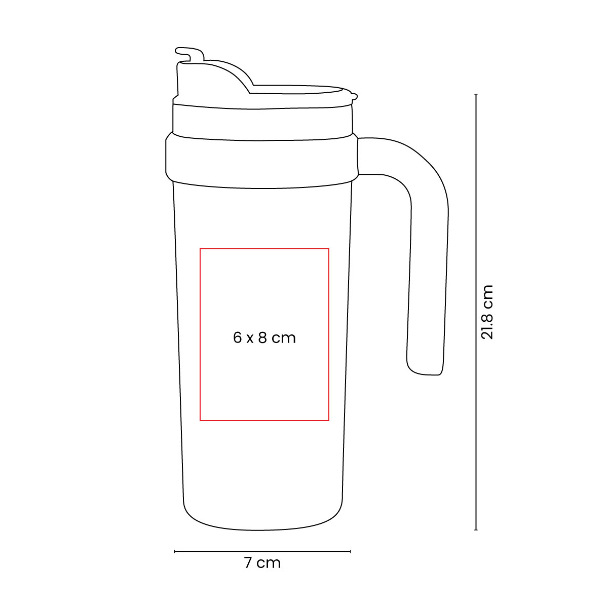 TERMO CELIES - Doble pared. Cerrado al vacío. Pared interna y externa de acero inoxidable. Tapa de plástico con cierre de rosca y sobretapa de push. Asa de plástico. Mantiene temperatura caliente 6 hrs y fria 12 hrs. Incluye caja individual.
