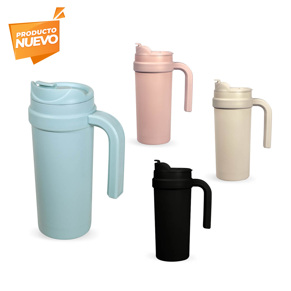 BILBAO Taza con doble pared de acero inoxidable, con base de silicón, asa de pl...