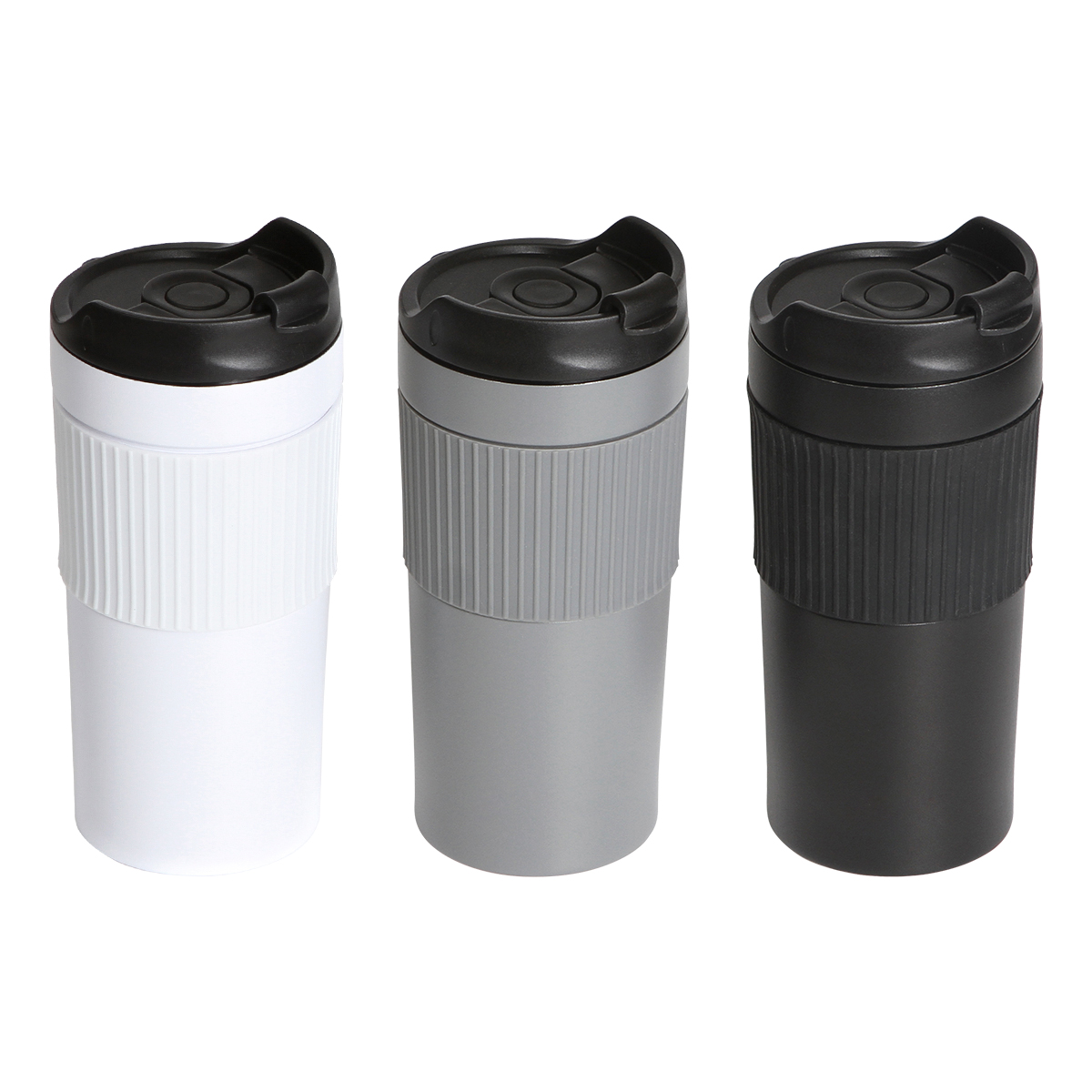 TAZA TASSE - Doble pared. Cerrado al vacío. Pared interna y externa de acero inoxidable. Terminado rugoso. Incluye tapa de plástico con válvula de seguridad y orificio para popote. Mantiene temperatura caliente 8 hrs y temperatura fría 10 hrs. Incluye caja individual.