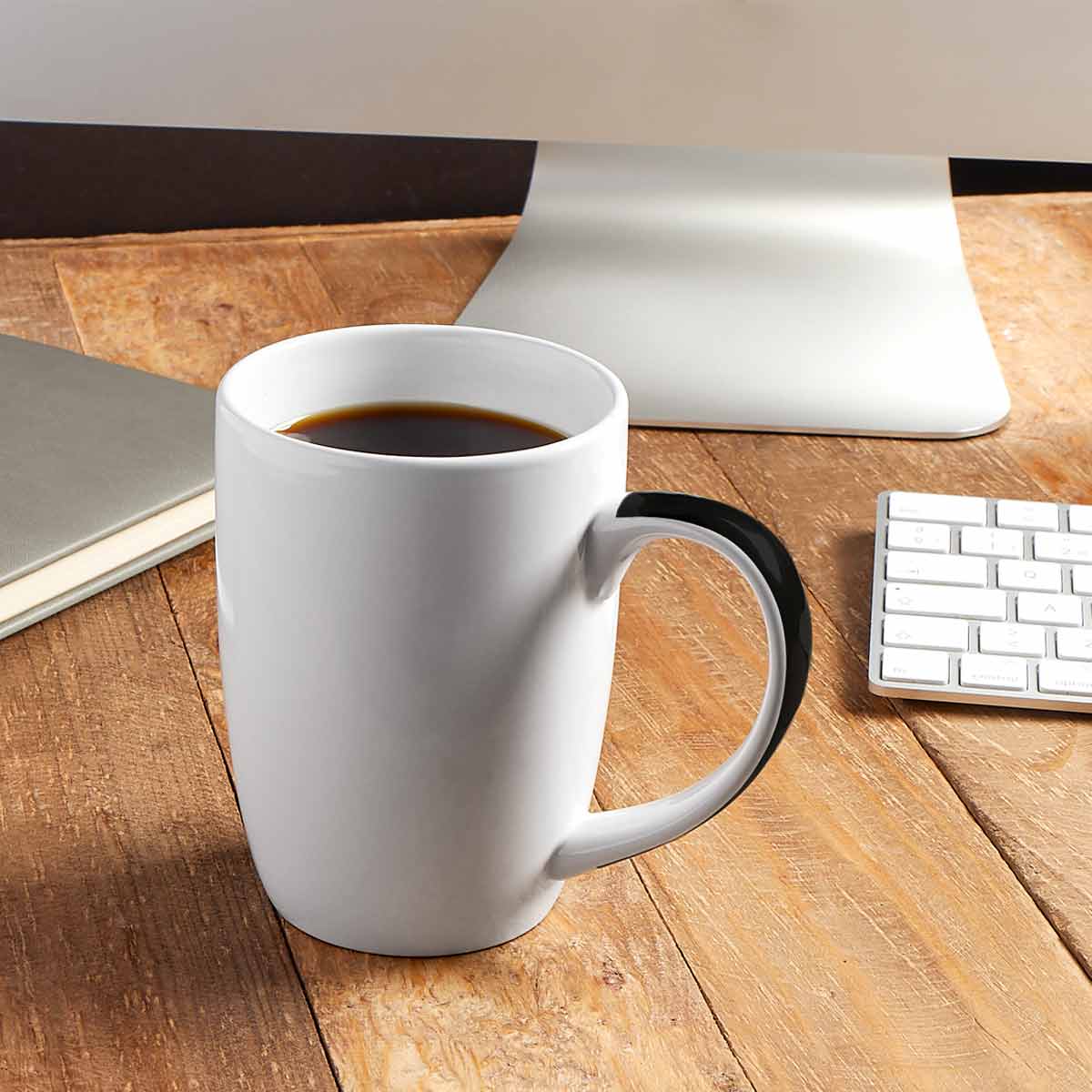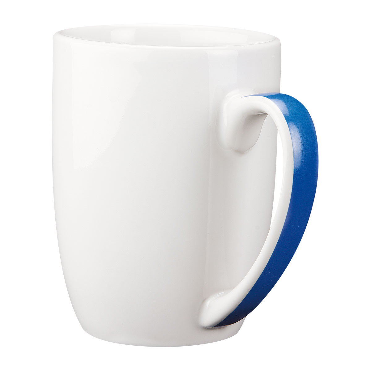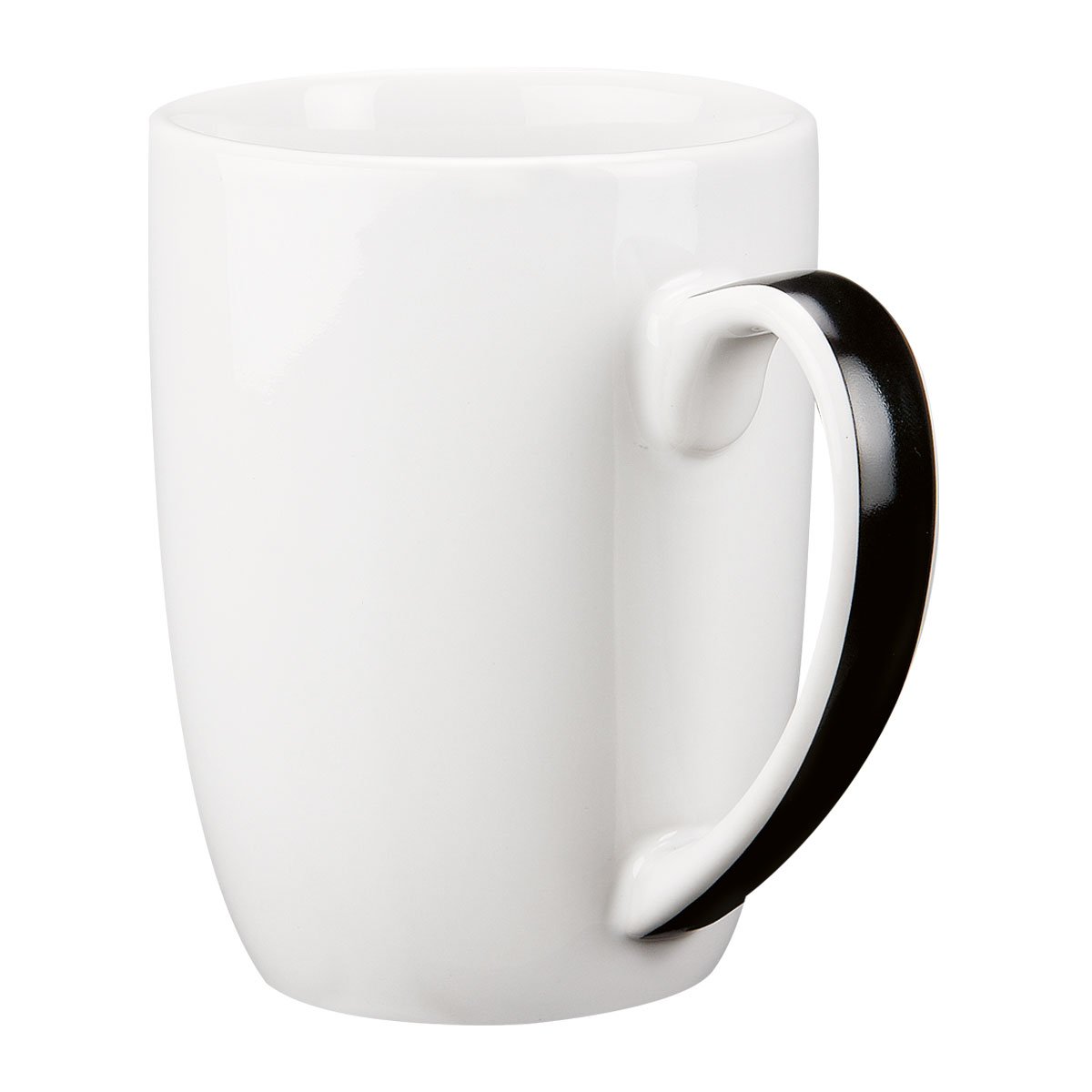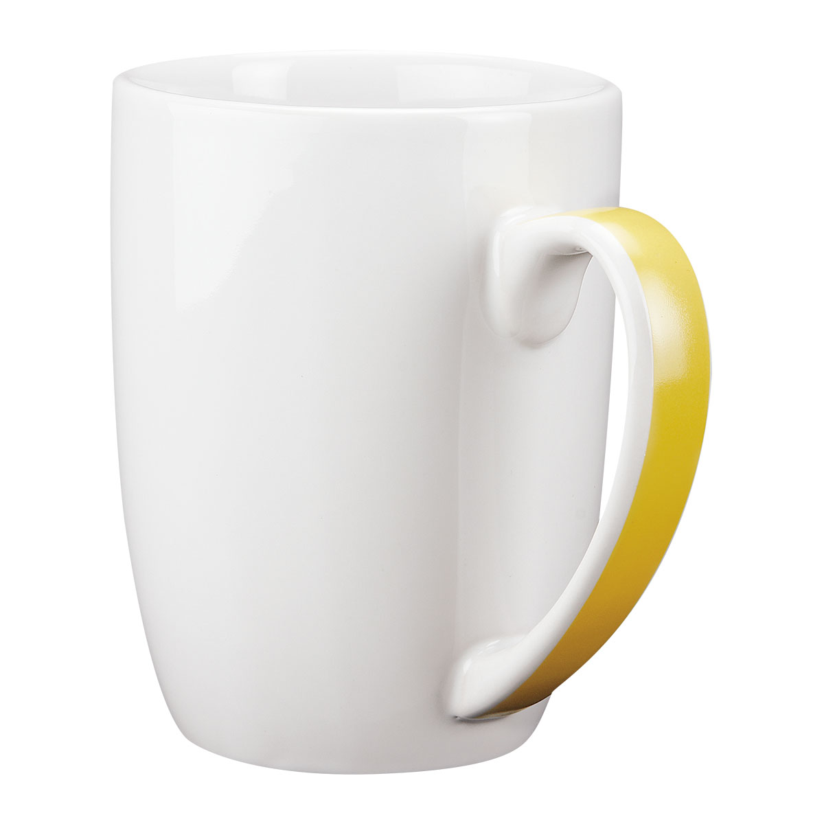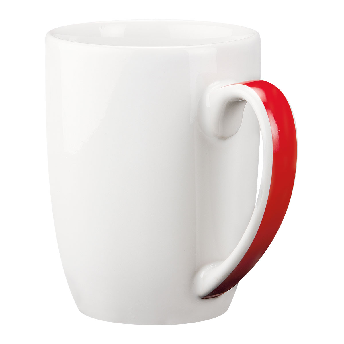TAZA DOLCE - Taza de cerámica blanca con asa de color. Venta caja cerrada de 36 piezas.