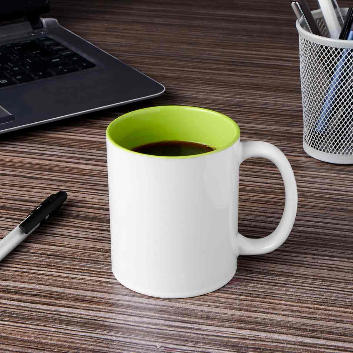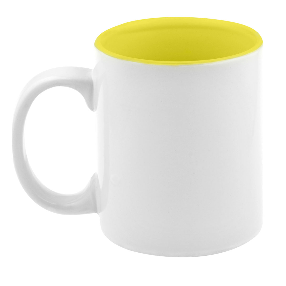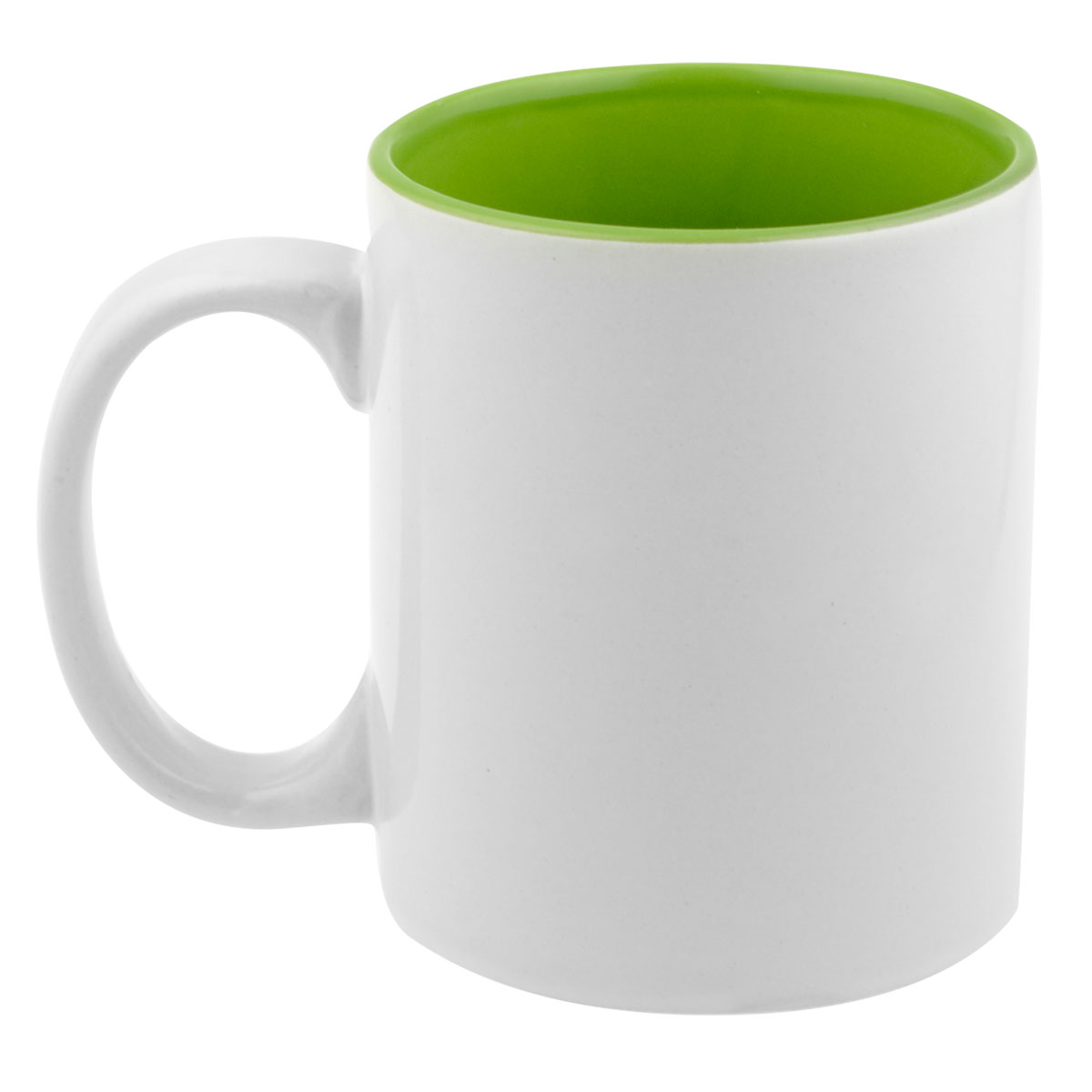 TAZA VERONA - Taza de cerámica blanca con interior de color. Venta caja cerrada de 36 piezas.